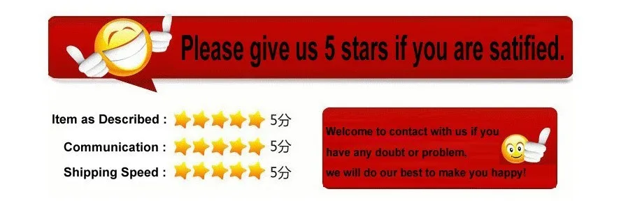 Оплата обычно подтверждается в течении 24 часов ALIEXPRESS Escrow является предпочтительным способом оплаты, однако мы также принимаем платежи через кредитные карты, Western Union и QIWIКормЗадняя часть Ваши положительные отзывы очень важны для нас. Мы считаем, что вы можете предоставить нам 5 звезд услуг, и мы будем действительно Отлично. Мы всегда вернем вам положительные отзывы. Если вы не удовлетворены нашим трюком, пожалуйста, свяжитесь с нами, прежде чем оставлять отзывы, чтобы мы могли решить проблему для Вас.
