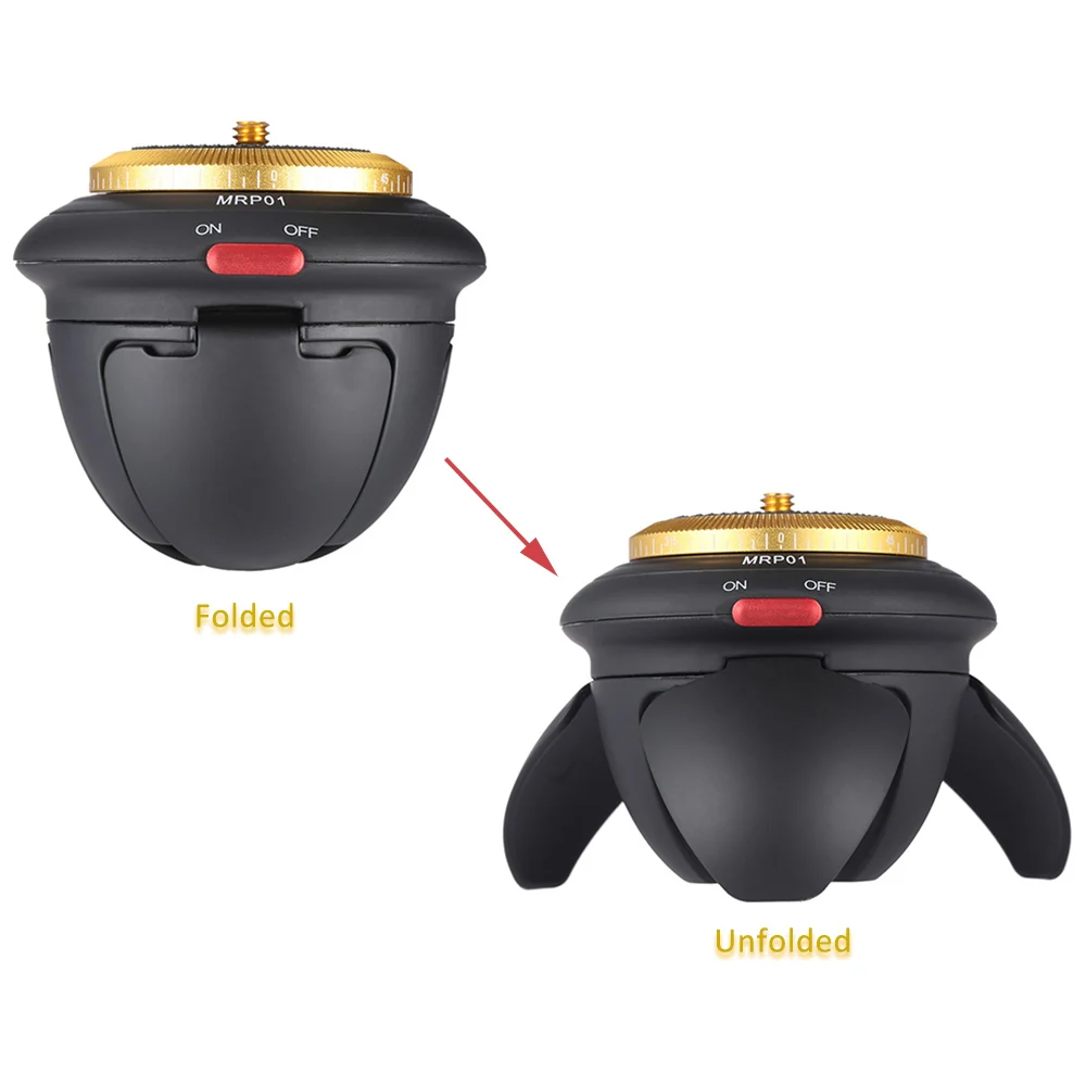 Панорамная головка с пультом дистанционного управления:Идеально подходит для сотовых телефонов и камер, чтобы поймать панорамные фотографии со встроенным электродвигателем, плавное движение с помощью пульта дистанционного управления, которое может автоматически вращать головку камеры на 360 градусов.