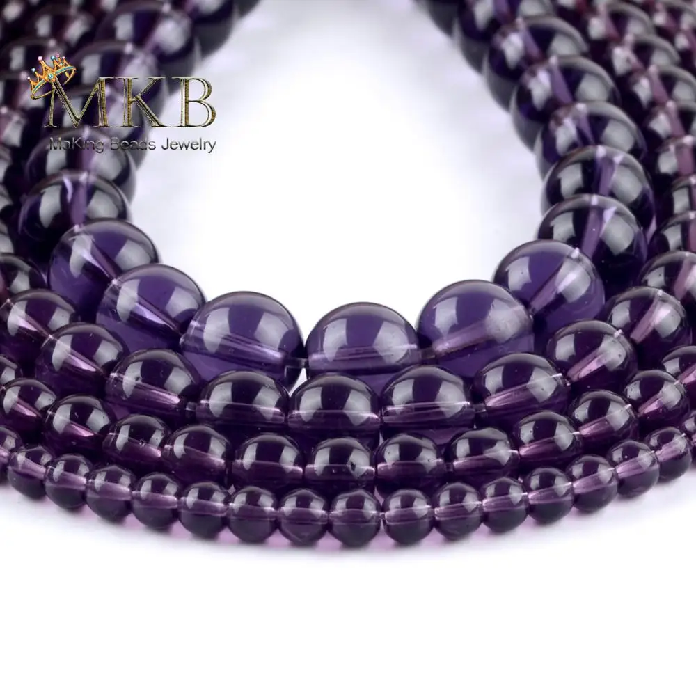 Оптовые гладкие круглые бусины из прозрачного аметиста для изготовления ювелирных украшений, 4, 6, 8, 10 мм, свободные бусины, сделай сам, браслет, нитка 15 дюймов