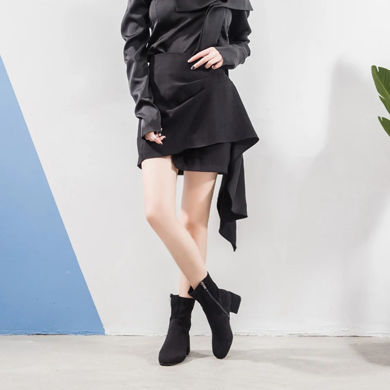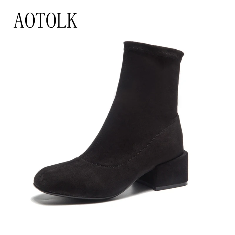 Ботильоны Женская зимняя обувь Брендовые черные женские ботинки на квадратном - купить