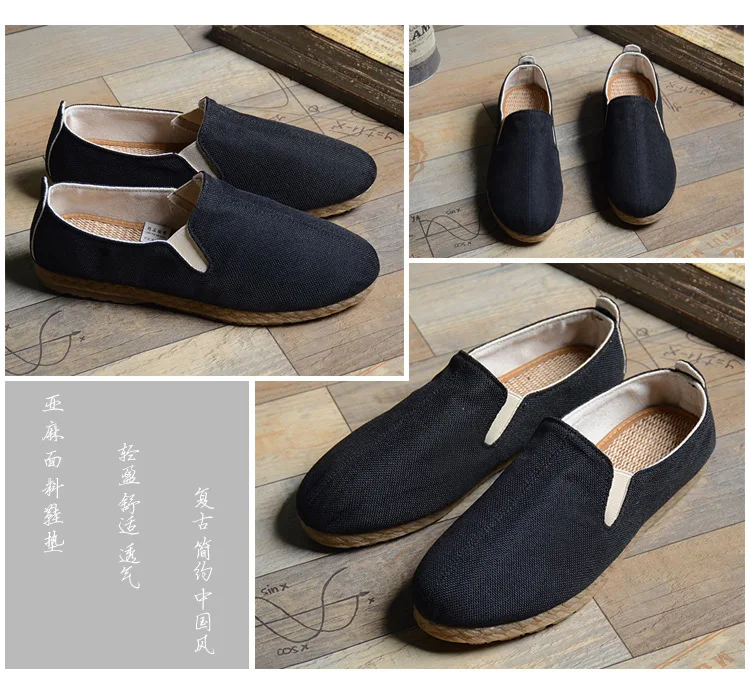 Название: OUDINIAO Мужская обувь из конопляной ткани верхняя Винтаж конопли парусиновые слипоны Для мужчин Повседневное обувь дышащая мужская обувь; мокасины; цвет синий, бежевый
