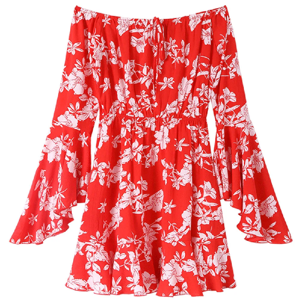 ZAFUL Floral Sleeve Lantern Vacation Beach Sling Flounce Off Shoulder Organza Dress Sexy Evening Party Bodycon Wholesale Женская - купить