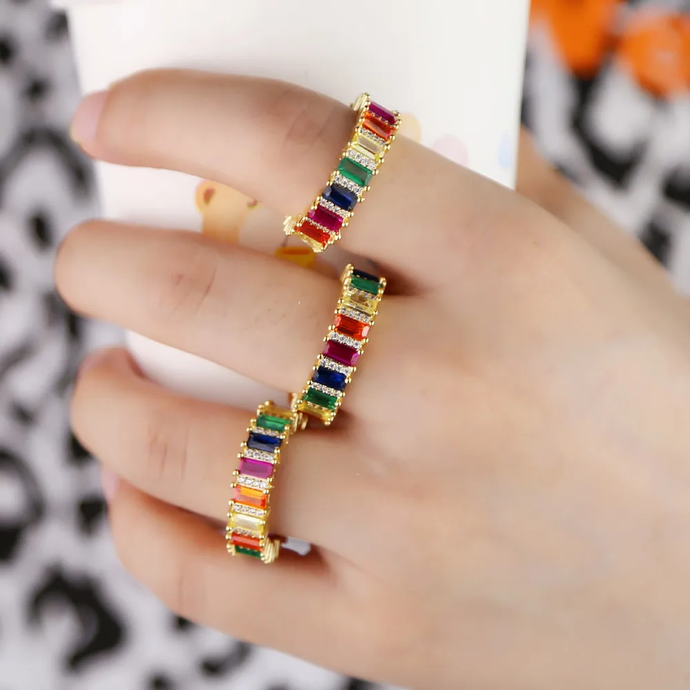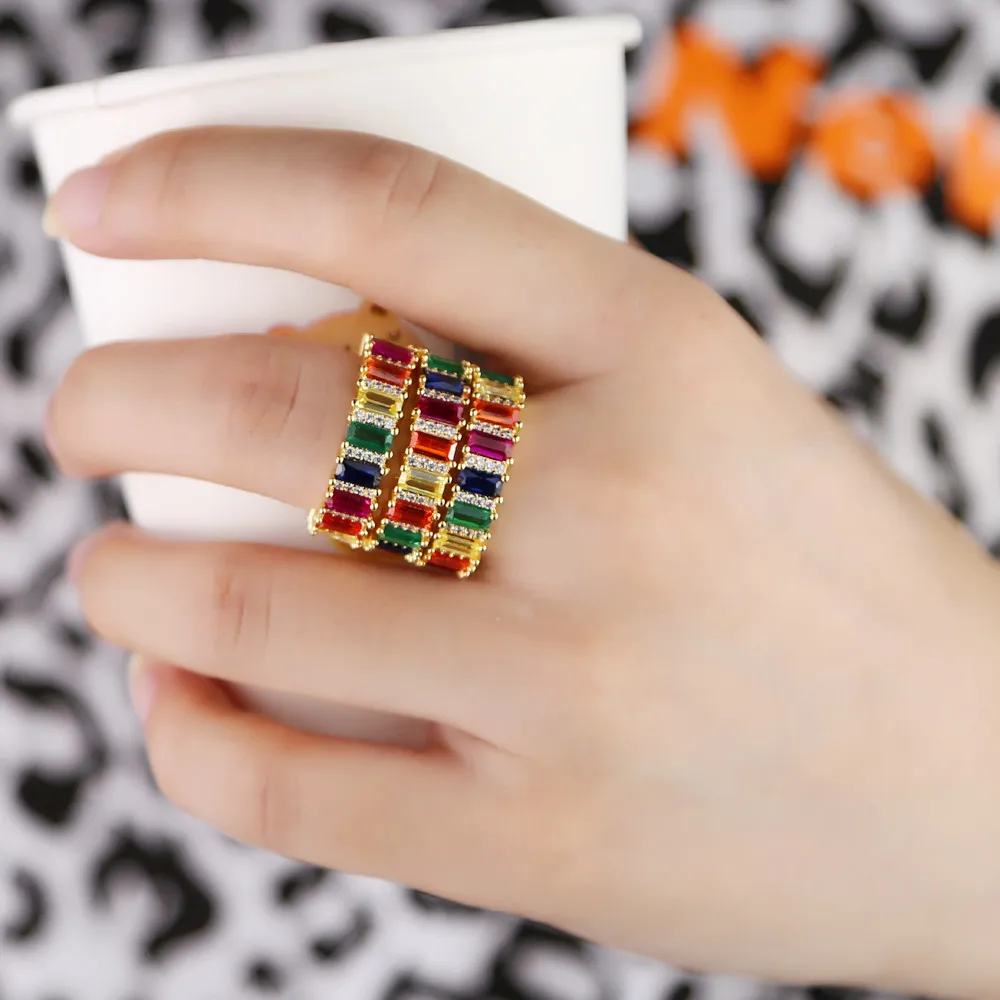 Женское кольцо-Багет с золотым наполнителем, разноцветное обручальное кольцо с кубическим цирконием в форме радуги, 2019