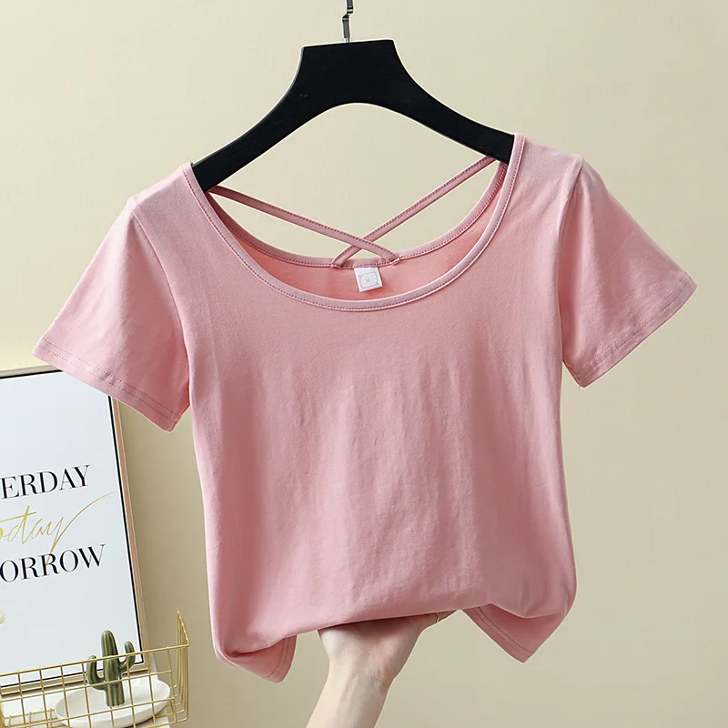 Отзывы о Хлопковая футболка с коротким рукавом Новинка лета 2019 Облегающая рубашка