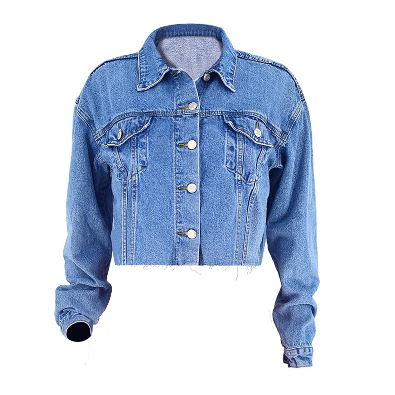 Женская укороченная джинсовая куртка Классическая Свободная с длинным рукавом - купить