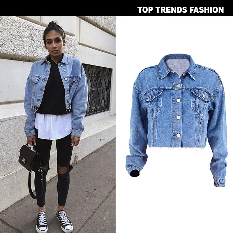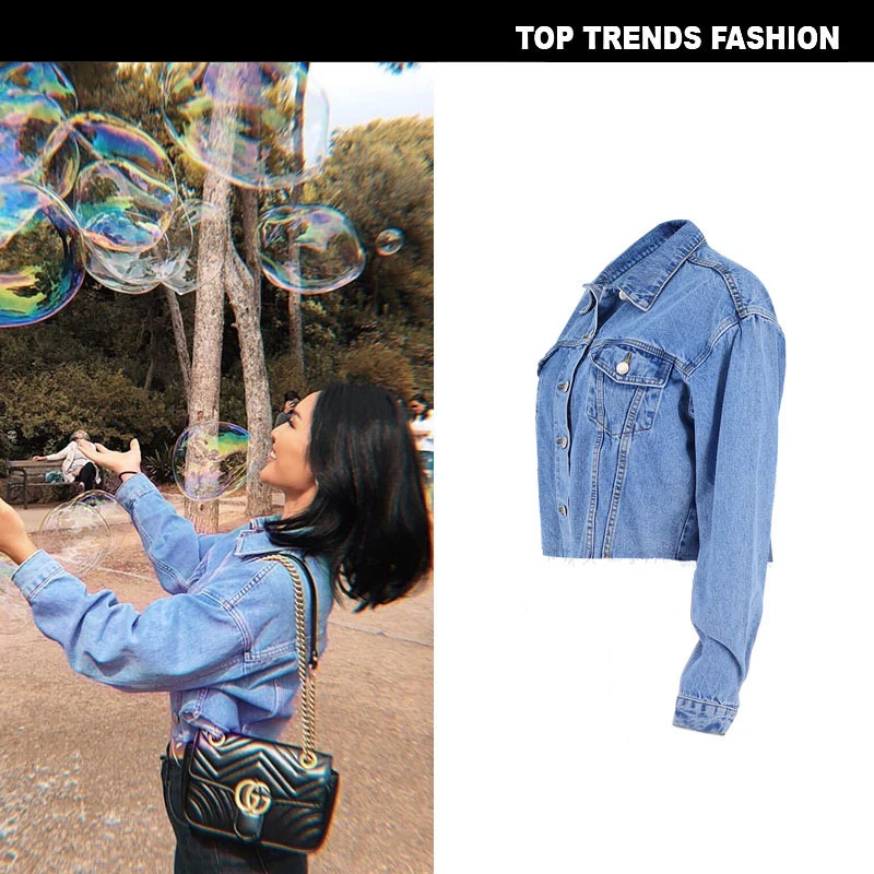 Отзывы о Женская укороченная джинсовая куртка Классическая Свободная с длинным рукавом