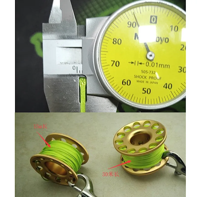 Катушка для дайвинга из алюминиевого сплава Информация о продукте Материал: авиационный алюминий (высокая прочность, устойчивость к коррозии, легкий вес) Размер: 30 метровая линия Вес: около 79 г Авиационный алюминиевый материал Маленький размер, легко носить с собой, гуманизированная изогнутая поверхность Заказные супер-новые волокна усиленные плоские основные линии супер натяжение анти-обмотки