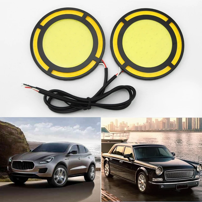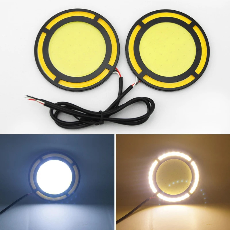 2 шт. автомобильный желтый + белый Cob Светодиодный дневной светильник лампа Drl лампа дневного света противотуманный светильник