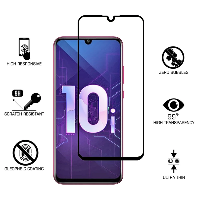 2-в-1 камера закаленное стекло для Huawei Honor 10i защита экрана полное покрытие для Honor 10i 10 i HRY-LX1T Защитная стеклянная пленка