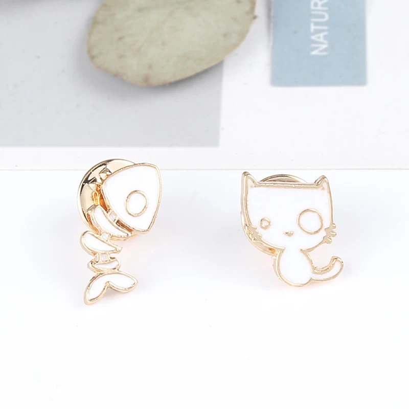 Купить Креативная эмалированная заколка в виде белого кота рыбы животного для женщин и