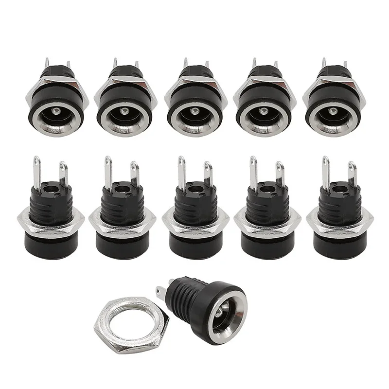 Оптовая продажа, 1000 шт., 5,5x2,1 мм, гнездовой разъем питания постоянного тока, крепление на панели, гайка, разъем питания постоянного тока 5,5*2,1, 2-ножной терминальный адаптер