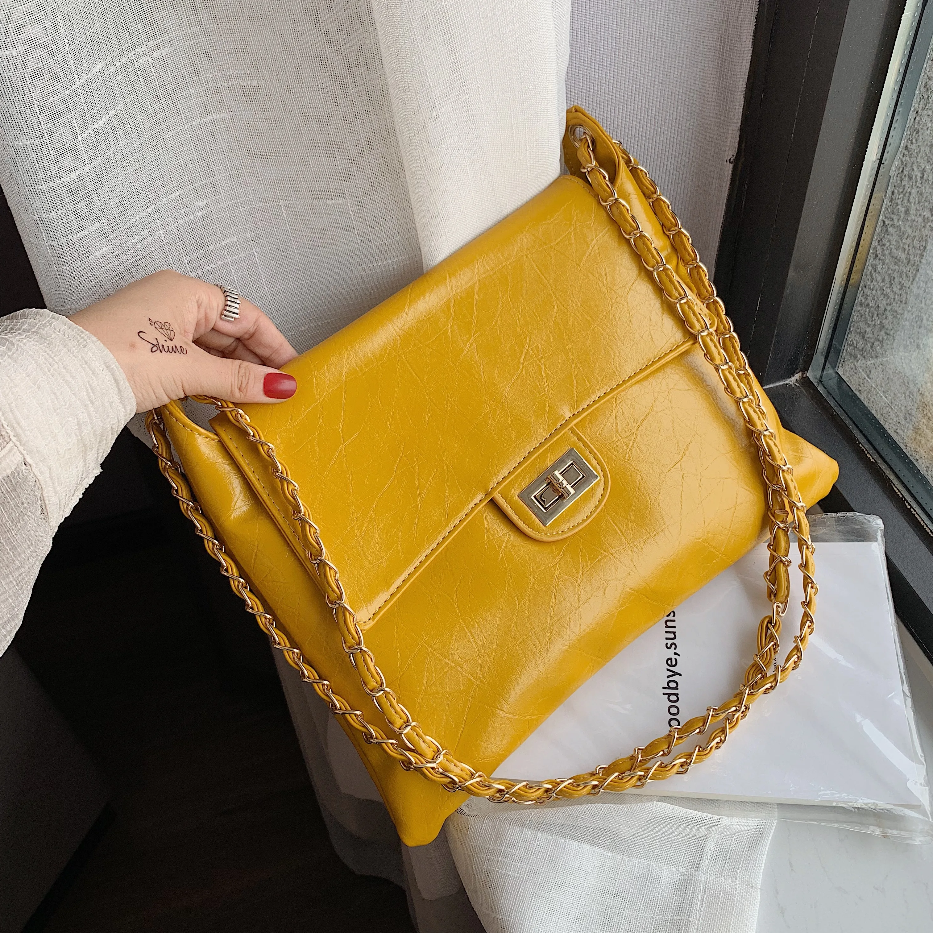 Желтая ручная сумка большой емкости Женские сумки стеганые на цепи через плечо - купить