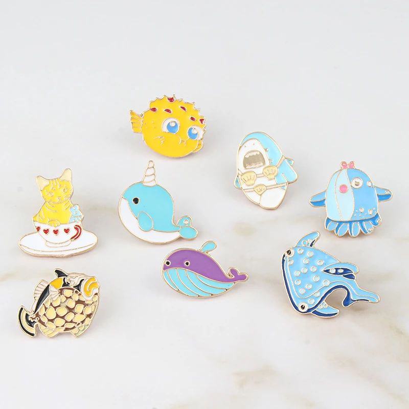 Булавка в виде морских мишек, Кита, акулы, нарвала, осьминога, рыба, твердая эмаль, булавка в виде отворота, броши, Мультяшные ювелирные изделия, подарок для детей