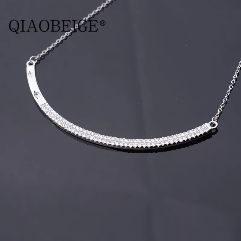 Купить QIAOBEIGE Мода 100% стерлингового серебра 925 Серебряная подвеска с цирконием цепь