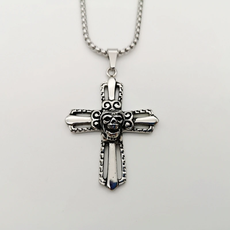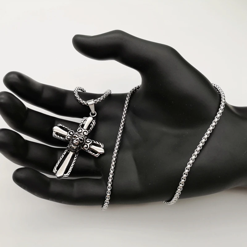 Description2019 AW new hollow out apeman cross pendant & necklace Vintage silver stainless steel stylish cross necklace man jewelry