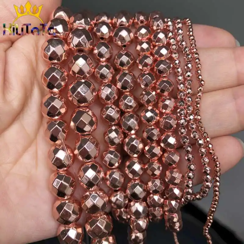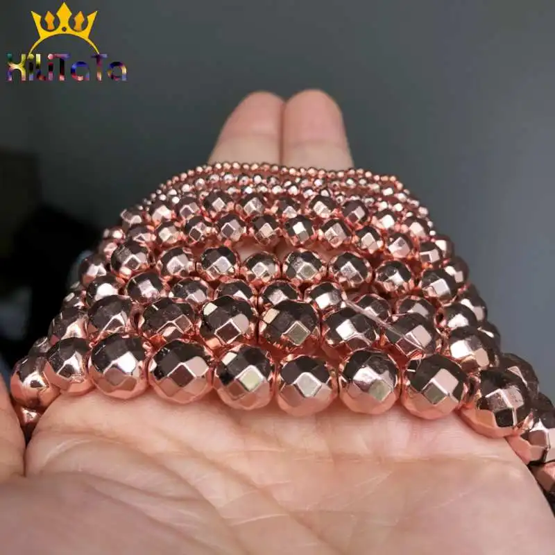 Натуральные граненые бусины из гематита цвета розового золота круглые - купить