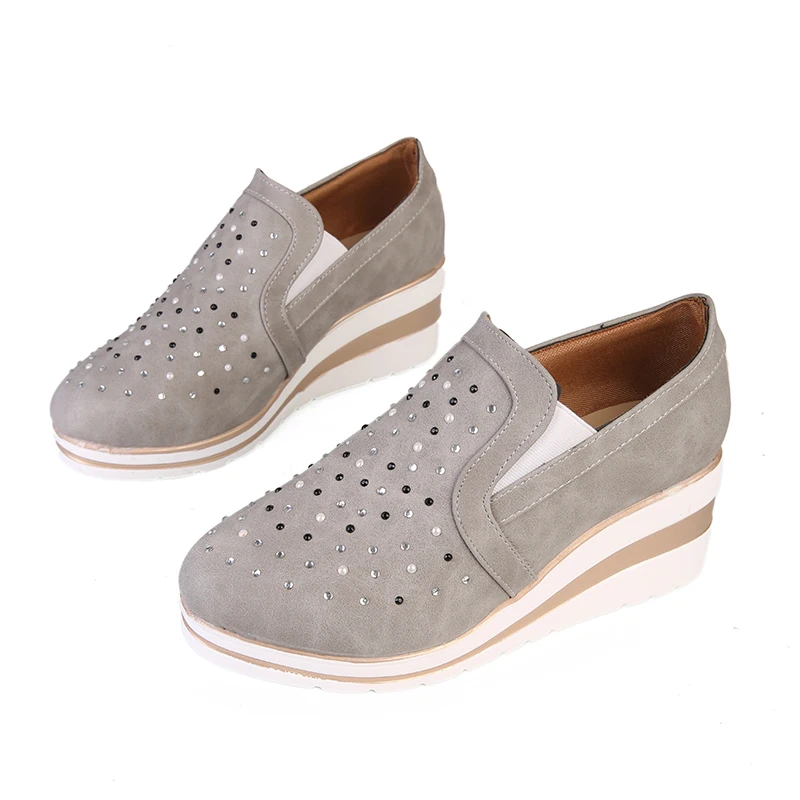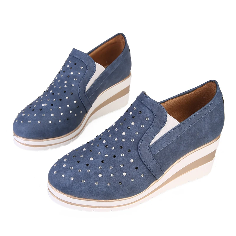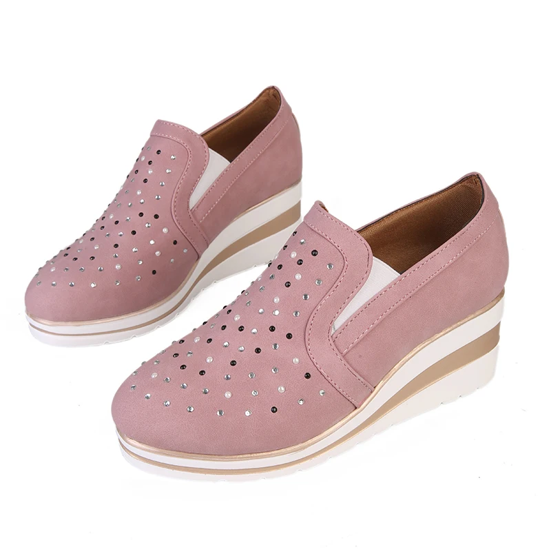 Купить Осенние женские тонкие туфли на танкетке сияющие хрустальные стразы лоферы из