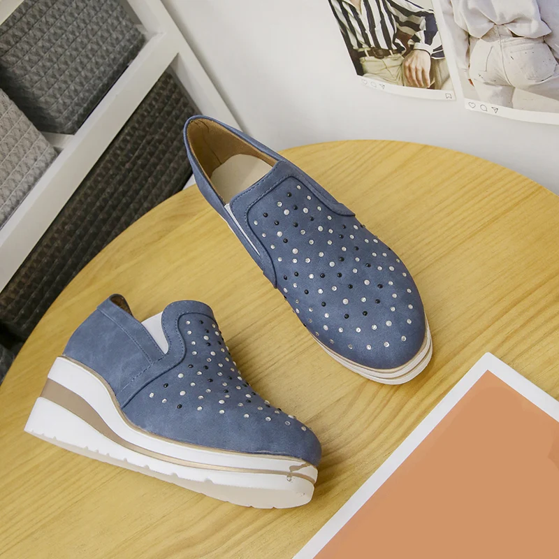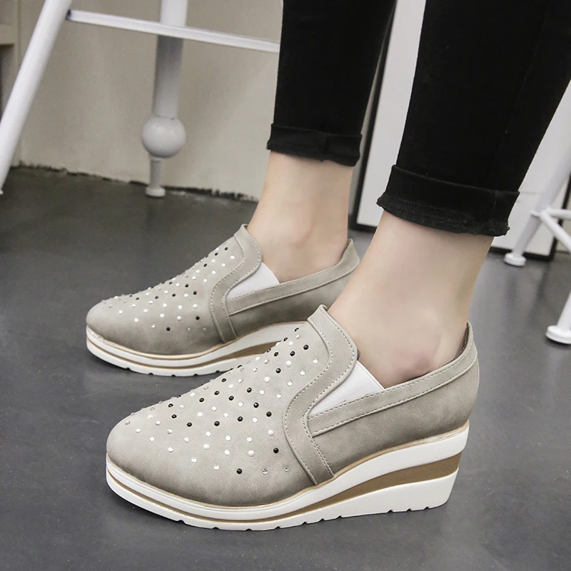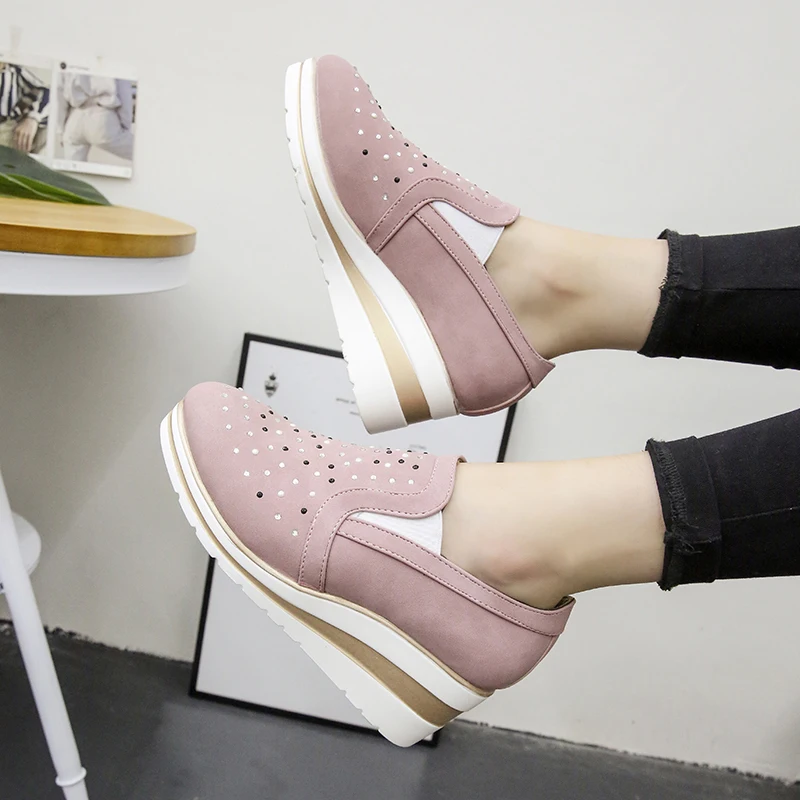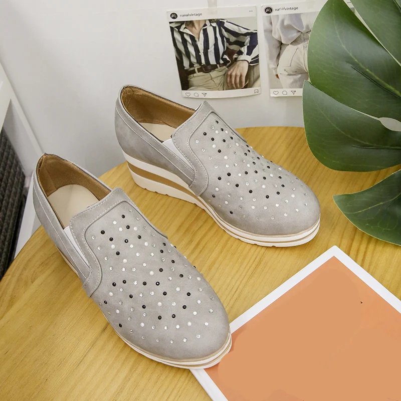 Отзывы о Осенние женские тонкие туфли на танкетке сияющие хрустальные стразы лоферы из