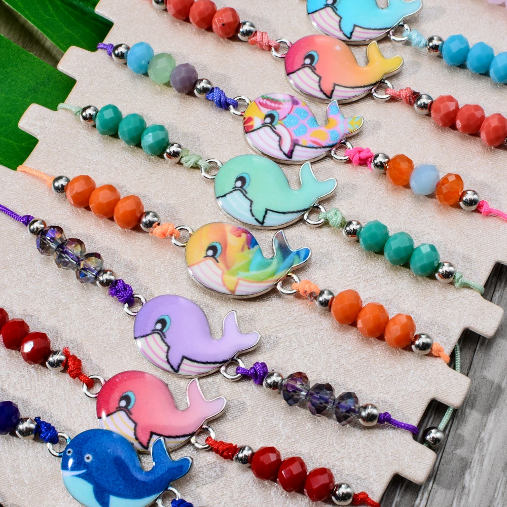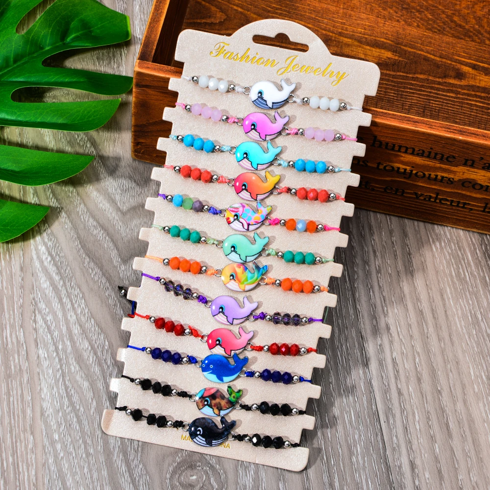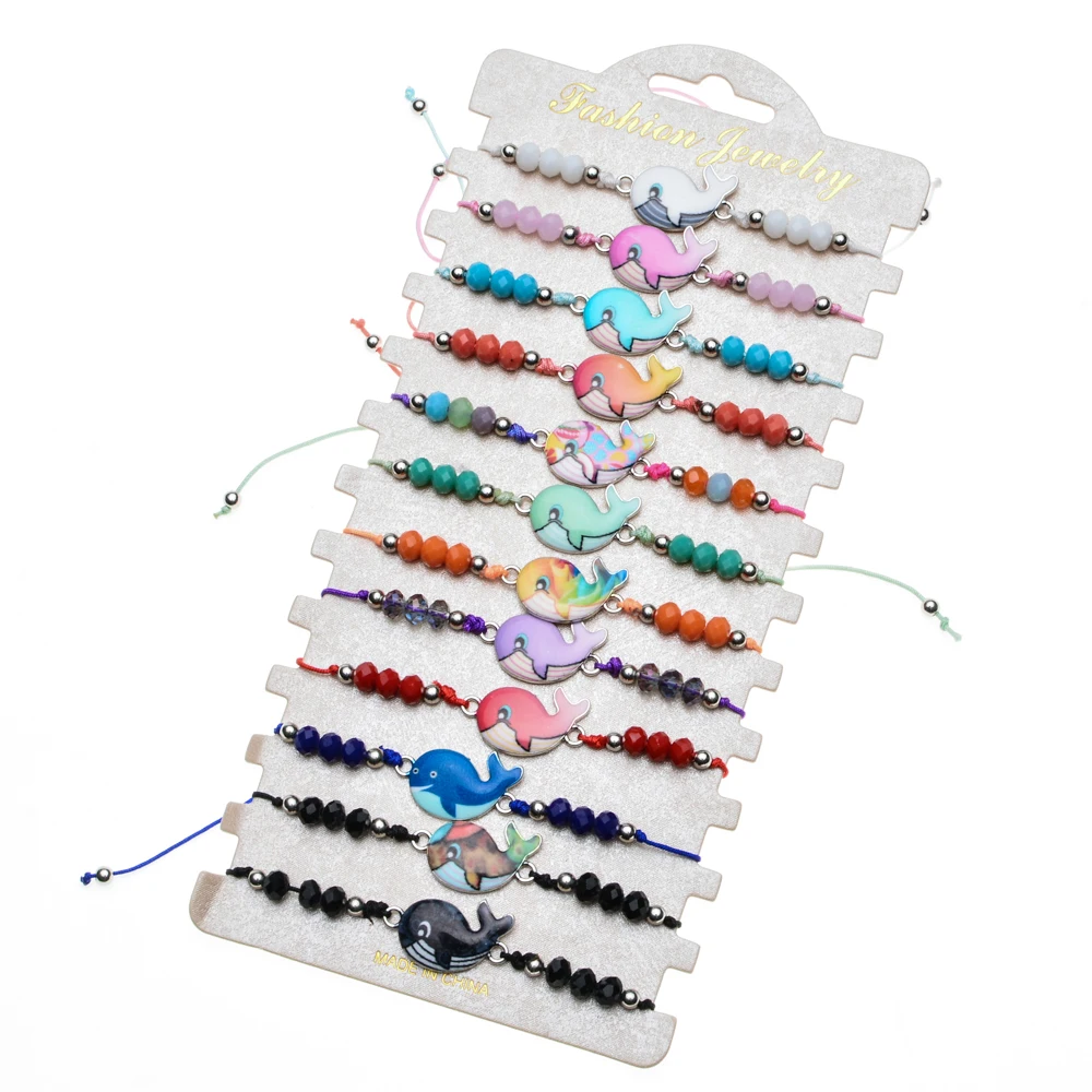 Boho 12 шт Подвески с дельфинами Кристалл бисера Плетеный браслет набор для женщин - купить