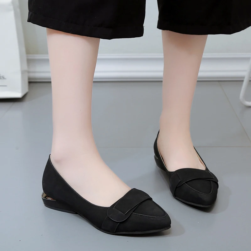 2019 New Women Shoes Female Slip on Ballet Flats Solid Leather Woman Pointed Toe Square Low Heels Ladies Plus Size Обувь - купить