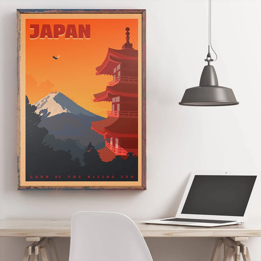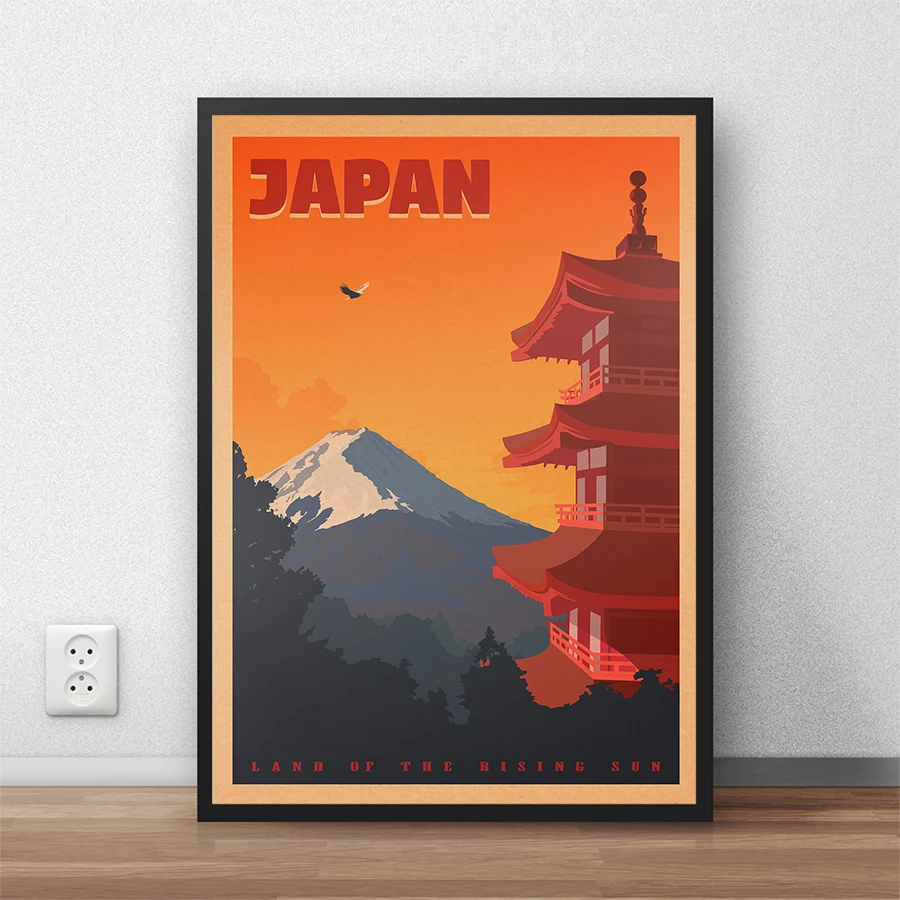 Постер из японского города для путешествий расписанный вручную туристических - купить