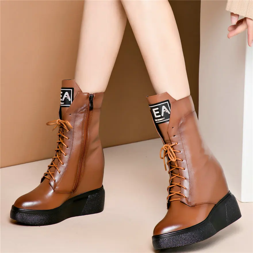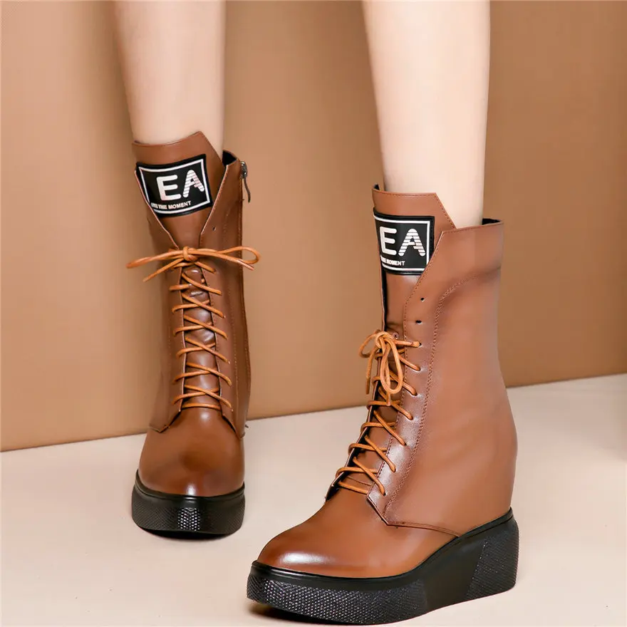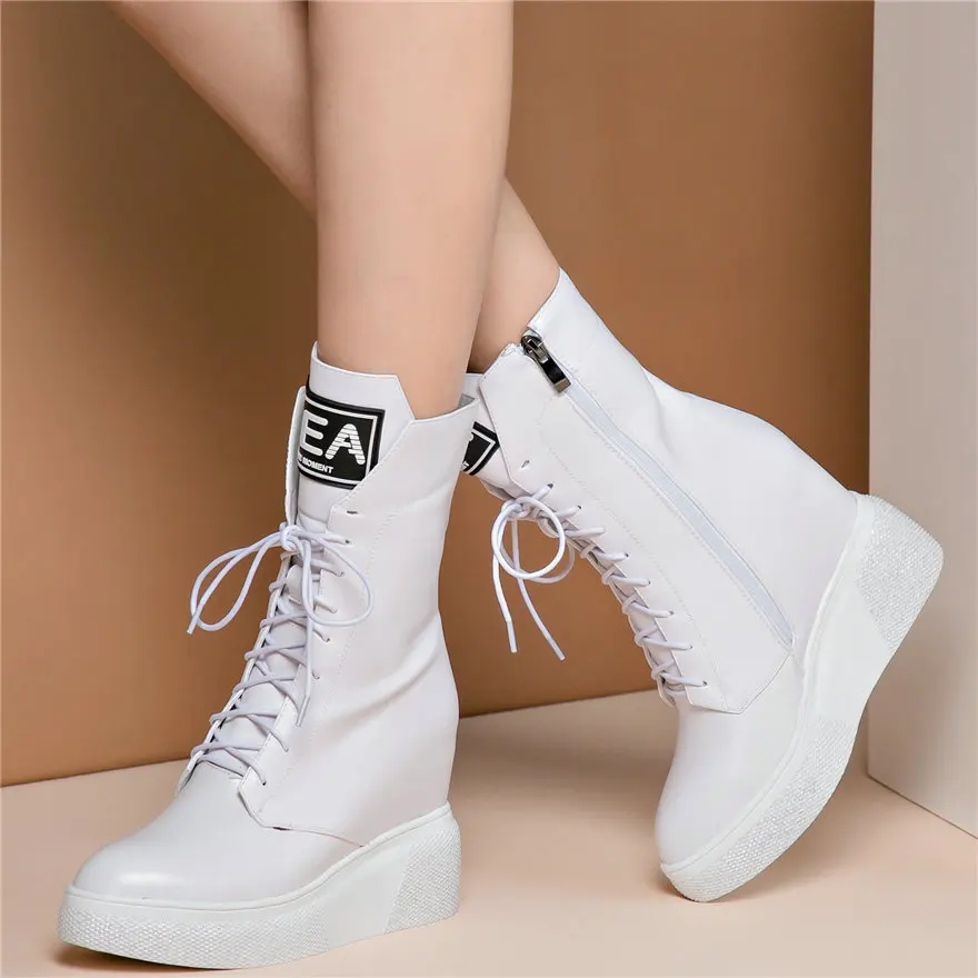 Женские высокие кроссовки натуральная кожа на шнуровке танкетке ботильоны - купить