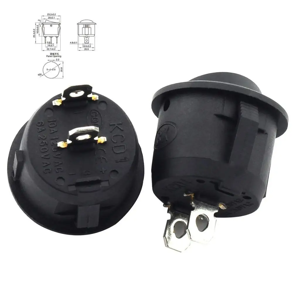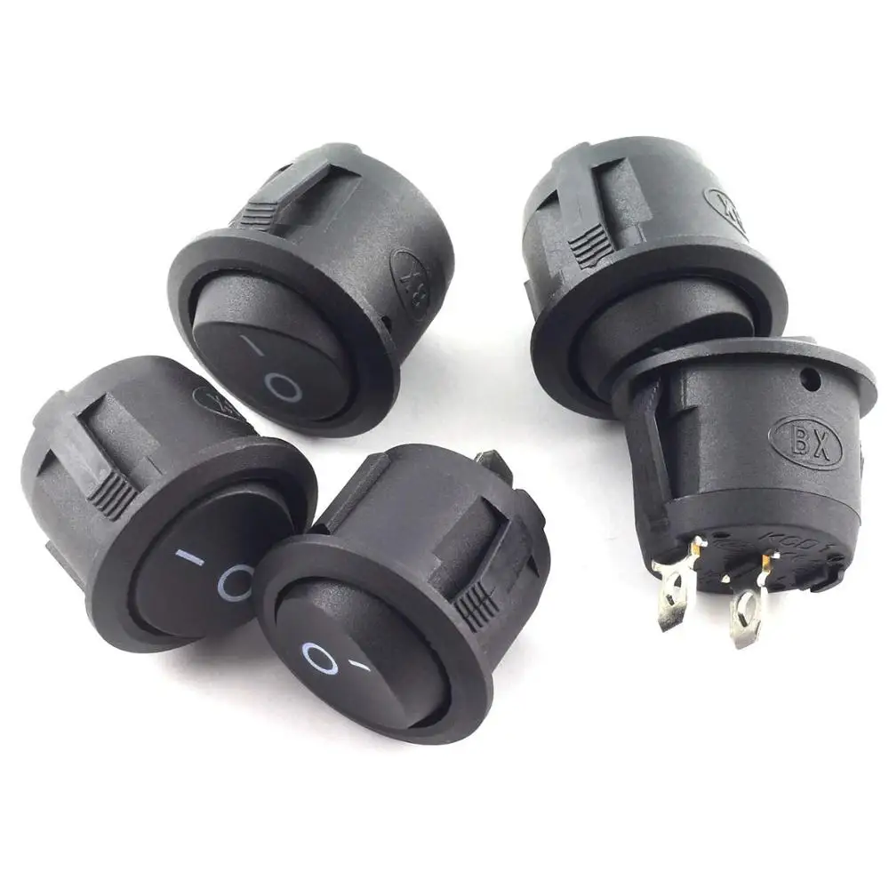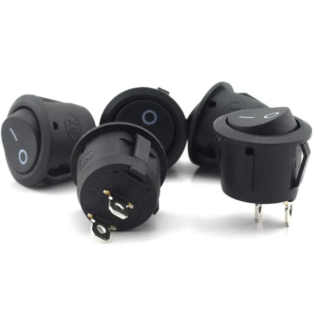100 шт. круглый кулисный выключатель питания 6A 250 В переменного тока 2 Pin 2 положения включения/выключения выключатель питания SPST Черная кнопка