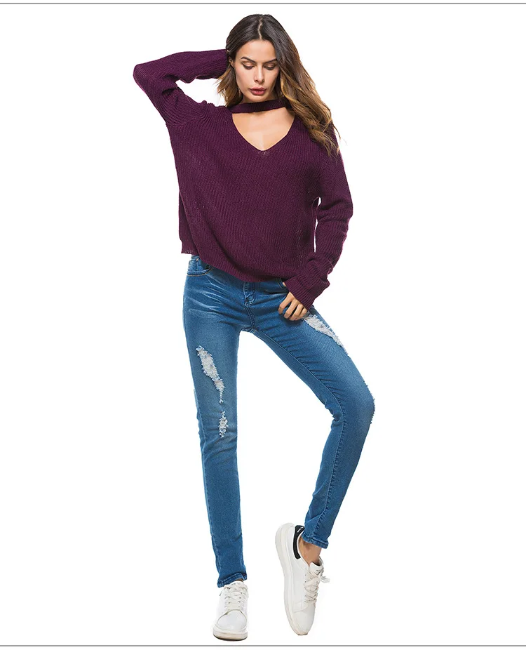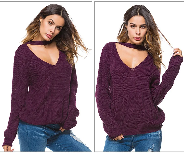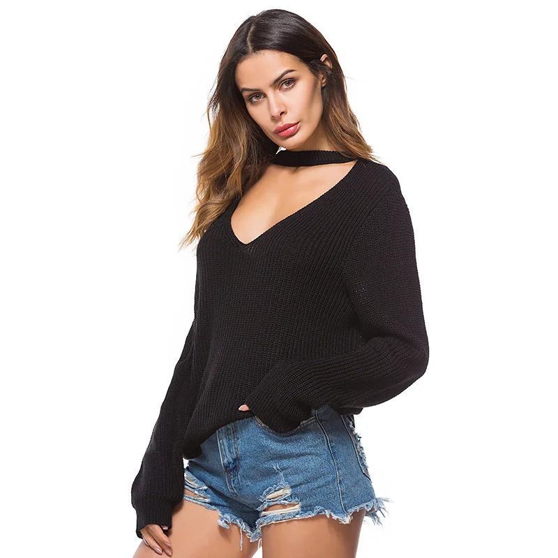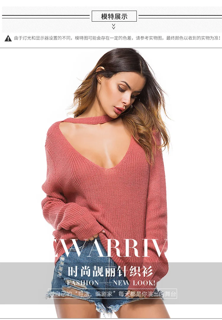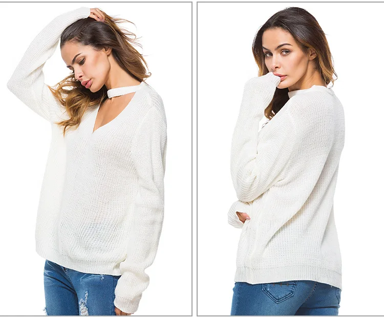 Отзывы о Sring White Sweater Women Long Sleeve Deep V-Neck Knitted Red Casaco Feminino Loose Autumn Sexy Casual Pullovers Black Ladies Женская
