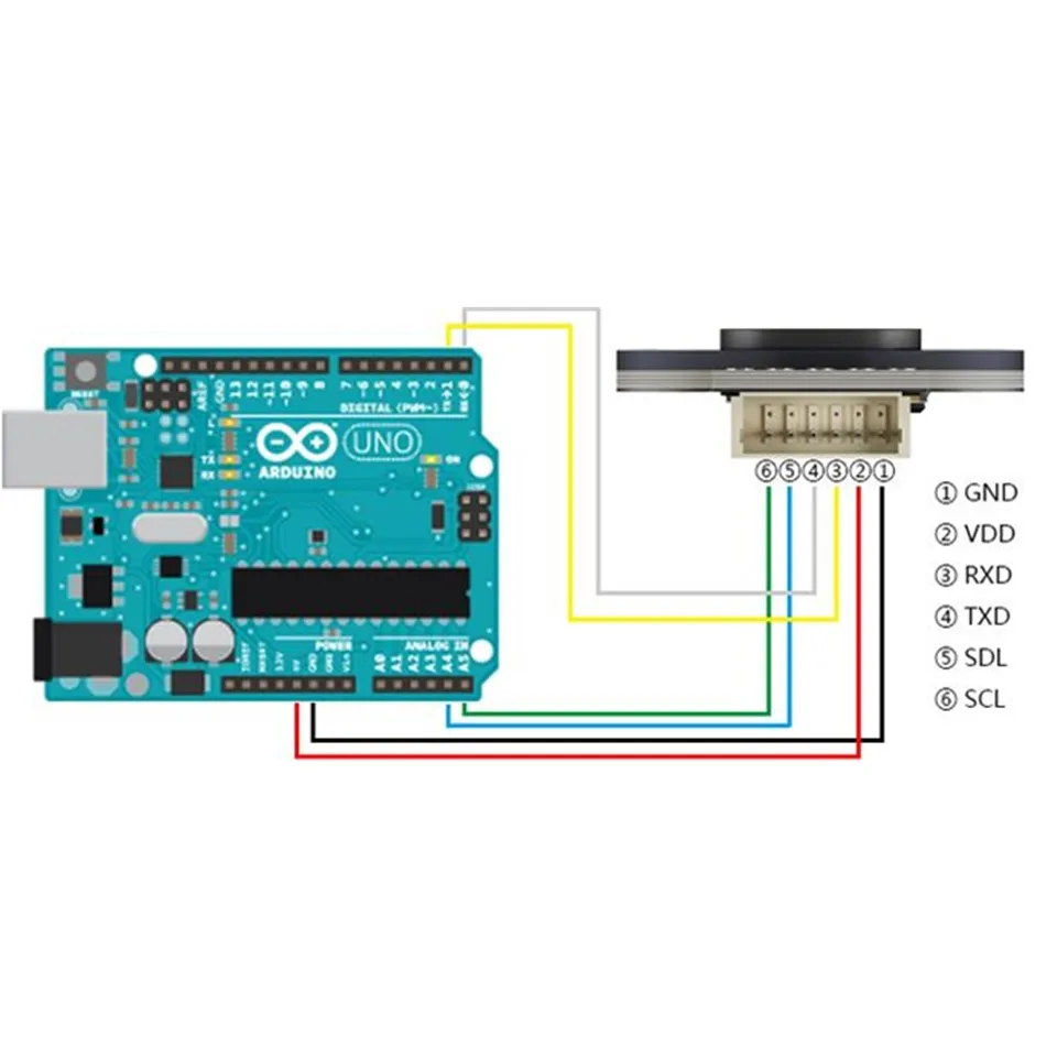 Датчик расстояния подключения платы rduino, UART считывает данные расстояния через RXD-TXD, I2C считывает данные расстояния через A4-A5, UART считывает, чтобы удалить A4-A5 программу загрузки кода Ardunio, чтобы удалить модуль после загрузки успешно, а затем подключить к Arduino Code UART, по одному для каждого I2C