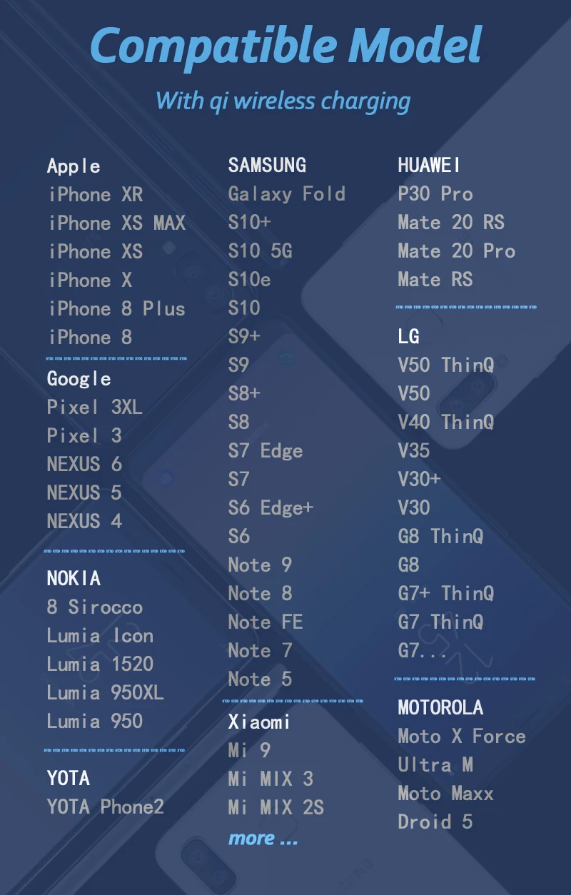 Умная Беспроводная зарядная станция: несколько зарядных портов интеграции USB, type c/USB C, qi Беспроводное зарядное устройство. Светодиодный экран в реальном времени отображает напряжение зарядки, ток, выходную мощность ватт. Беспроводная Быстрая зарядка стандарт qi Беспроводная зарядка технология 10 W быстрая зарядка и совместимость с 5 W 7,5 W qi Беспроводное зарядное устройство. Интеллектуальное распознавание тока некоторых телефонов с фиксированный выход некоторых планшетных ПК не то же самое, поэтому 8 портов интеллектуального распознавания до максимального выхода устройства, чтобы достичь эффекта быстрой зарядки. IC умный идентификационный зарядный ток, такой как во время заполнения, зарядка планшета автоматически распознает Максимальный выходной ток 2,4 А. По-настоящему универсальный дизайн, обеспечивая быструю зарядку для нашего расширяющегося количества совместимых устройств, Инновационное зарядное устройство также может заряжать более старые смартфоны и планшеты, не оборудованные, с технологией IC. Безопасная зарядка гарантирует потрясающее турбо зарядное устройство сертифицировано IC. Промышленный Класс материалов и схемы премиум-класса обеспечивают безопасность зарядки в любое время, чтобы защитить вас, ваше устройство и свойства. * Только для использования в помещении. Вход: AC 100 V-240 В пер. тока, 50/60 Гц, 0.6A. Для цифровых продуктов с входным напряжением 5,0 в 5%. Выходное напряжение: 5,0 в. Выходной ток: 8А. Макс. Выход USB: 2.4A Макс. Выход типа c: 2.4a Макс. Беспроводная зарядка: 10 Вт макс. Размер: L190 * W139 * H50mm сетевой кабель Длина: 1,2 м Штекер: ЕС, США Япония, Великобритания, Австралия. Упаковка: 1 * Беспроводной зарядный блок 1 * шнур питания переменного тока 1*6 подставка