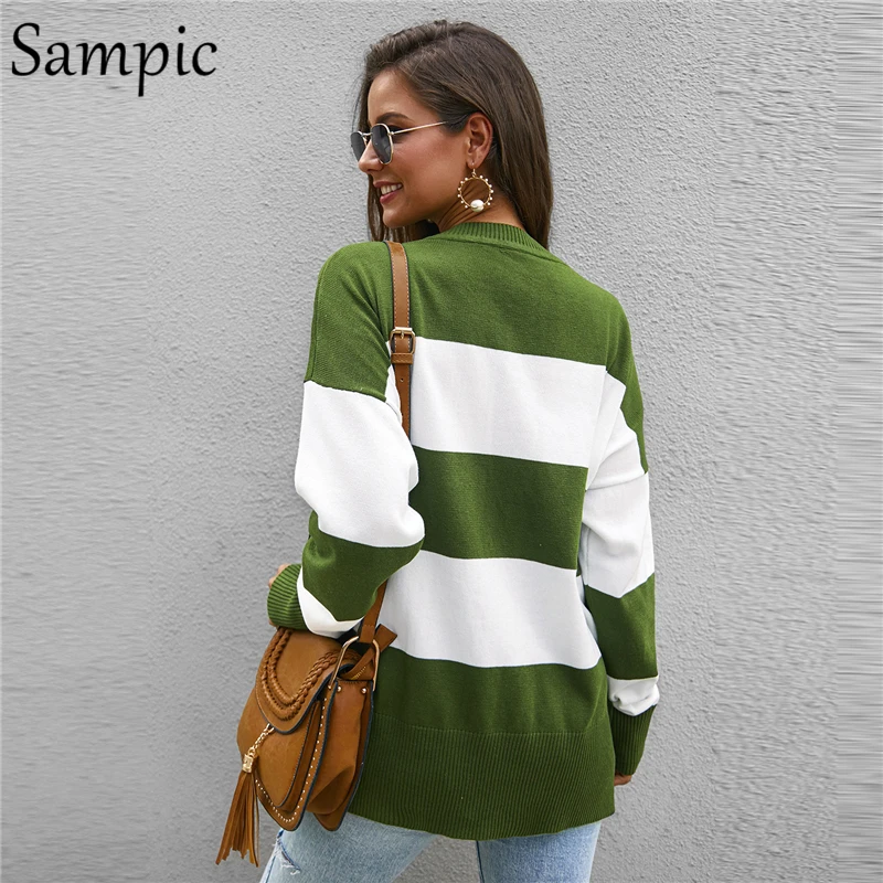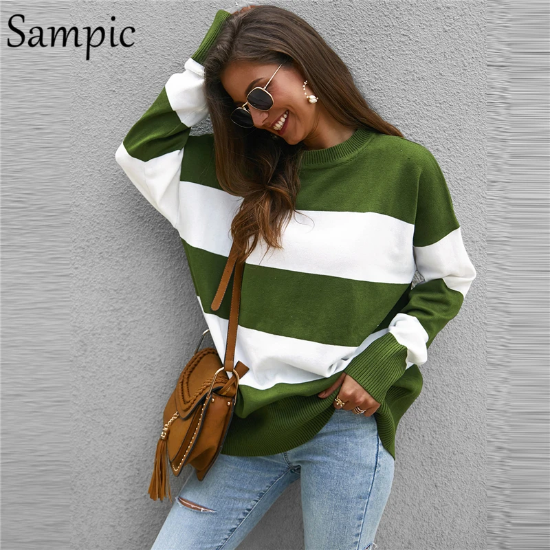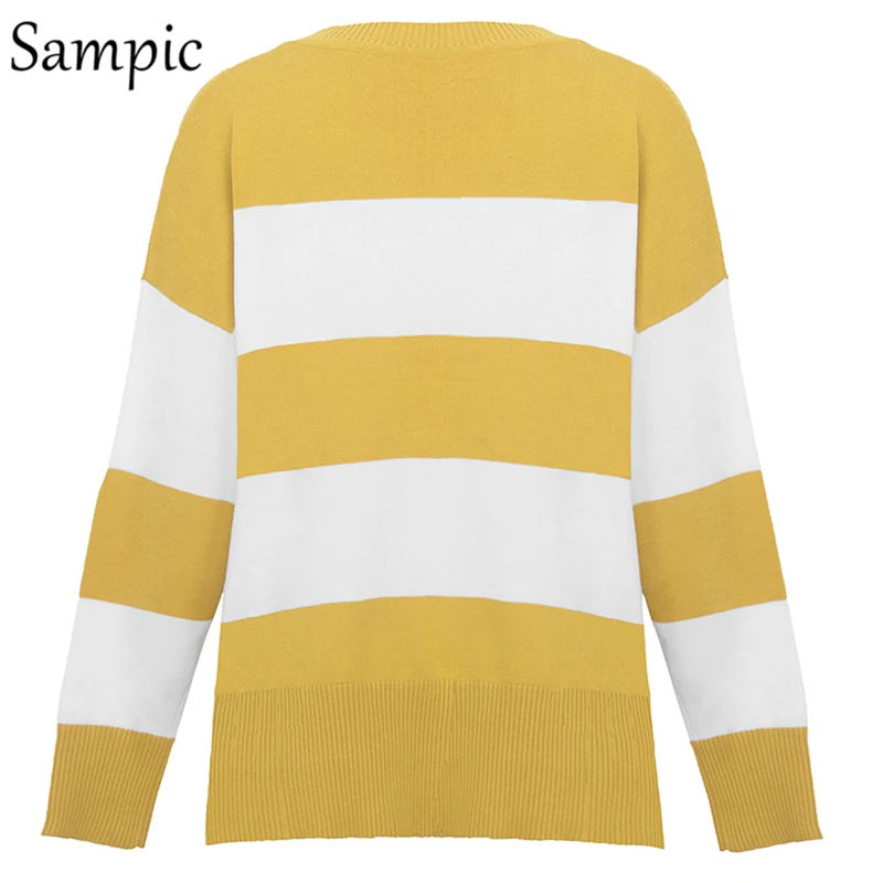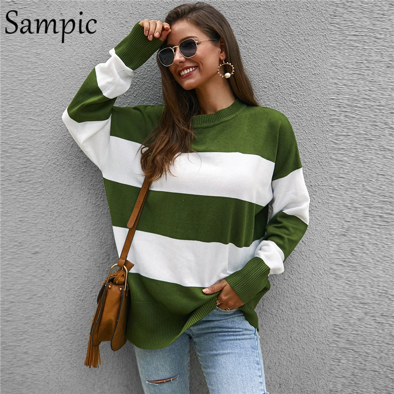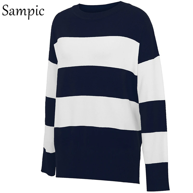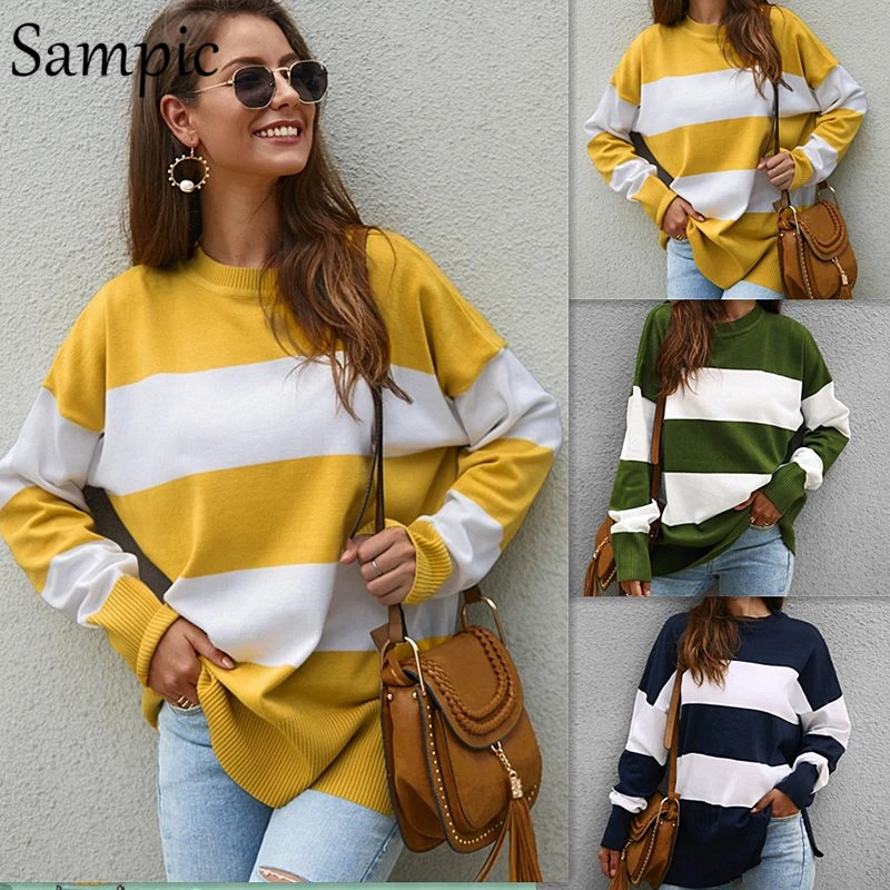 Вязаный свитер в полоску Celandine с длинным рукавом Женский Повседневный пуловер - купить
