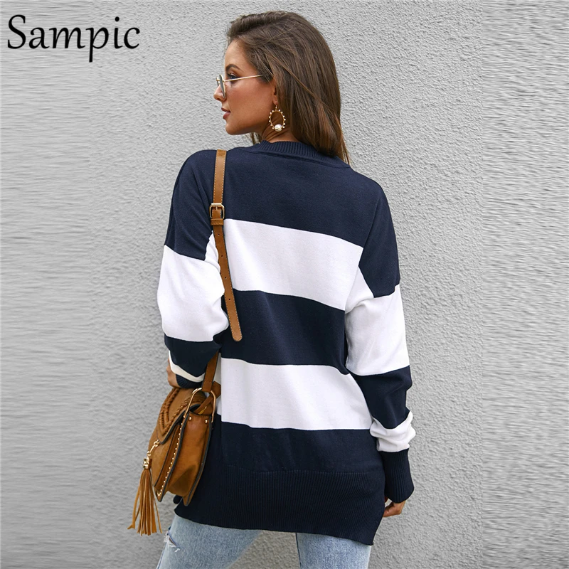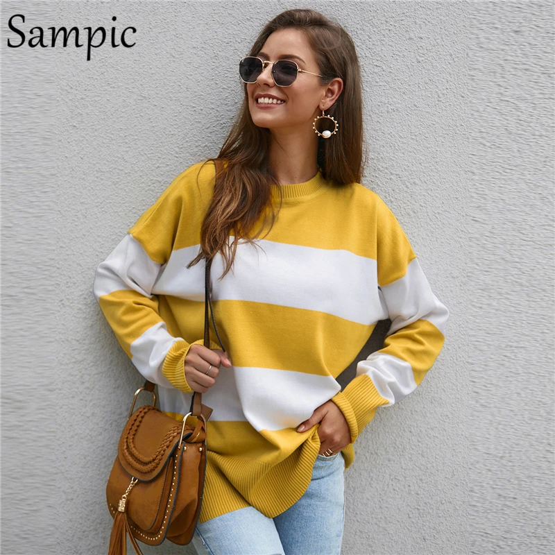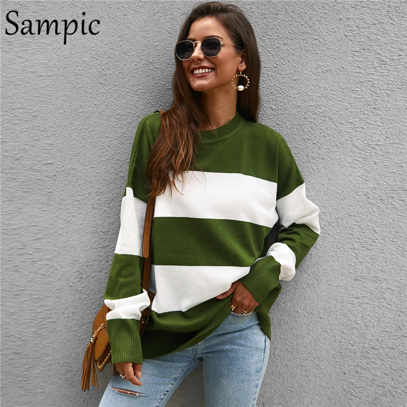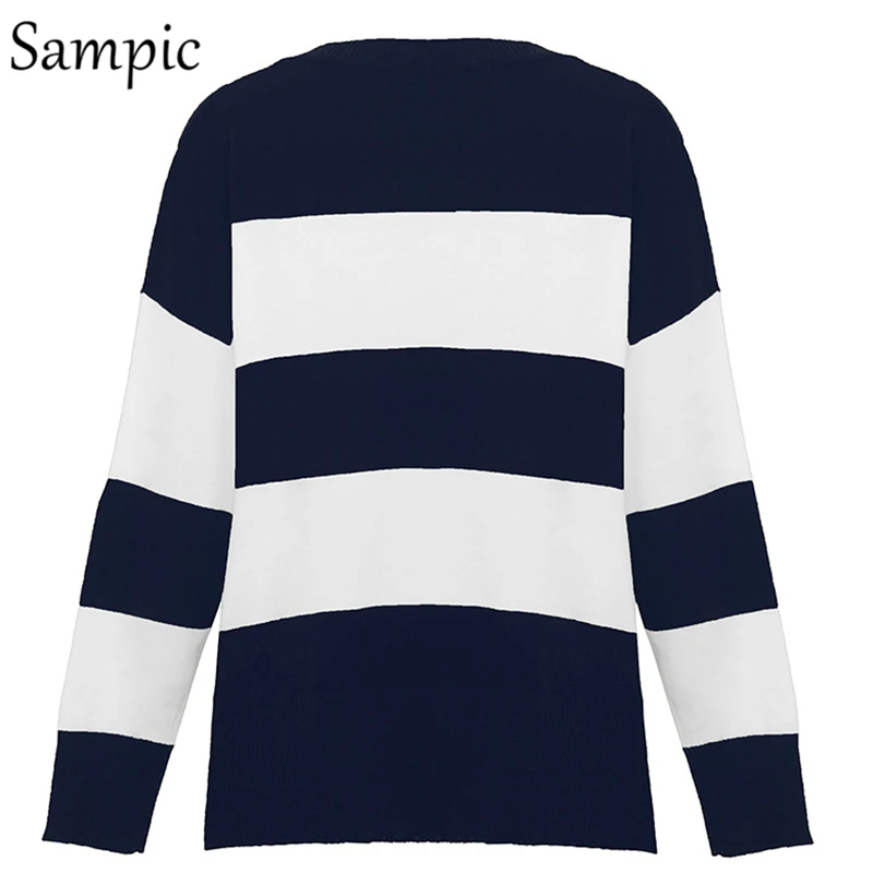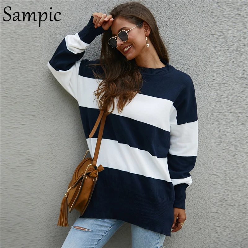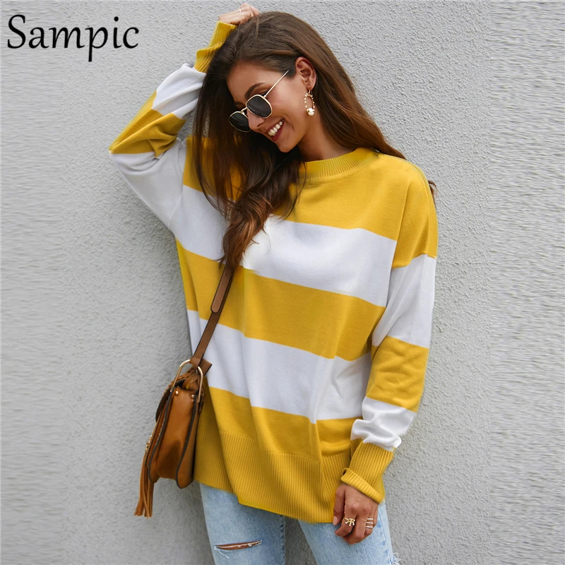 Вязаный свитер в полоску Celandine с длинным рукавом Женский Повседневный пуловер - купить