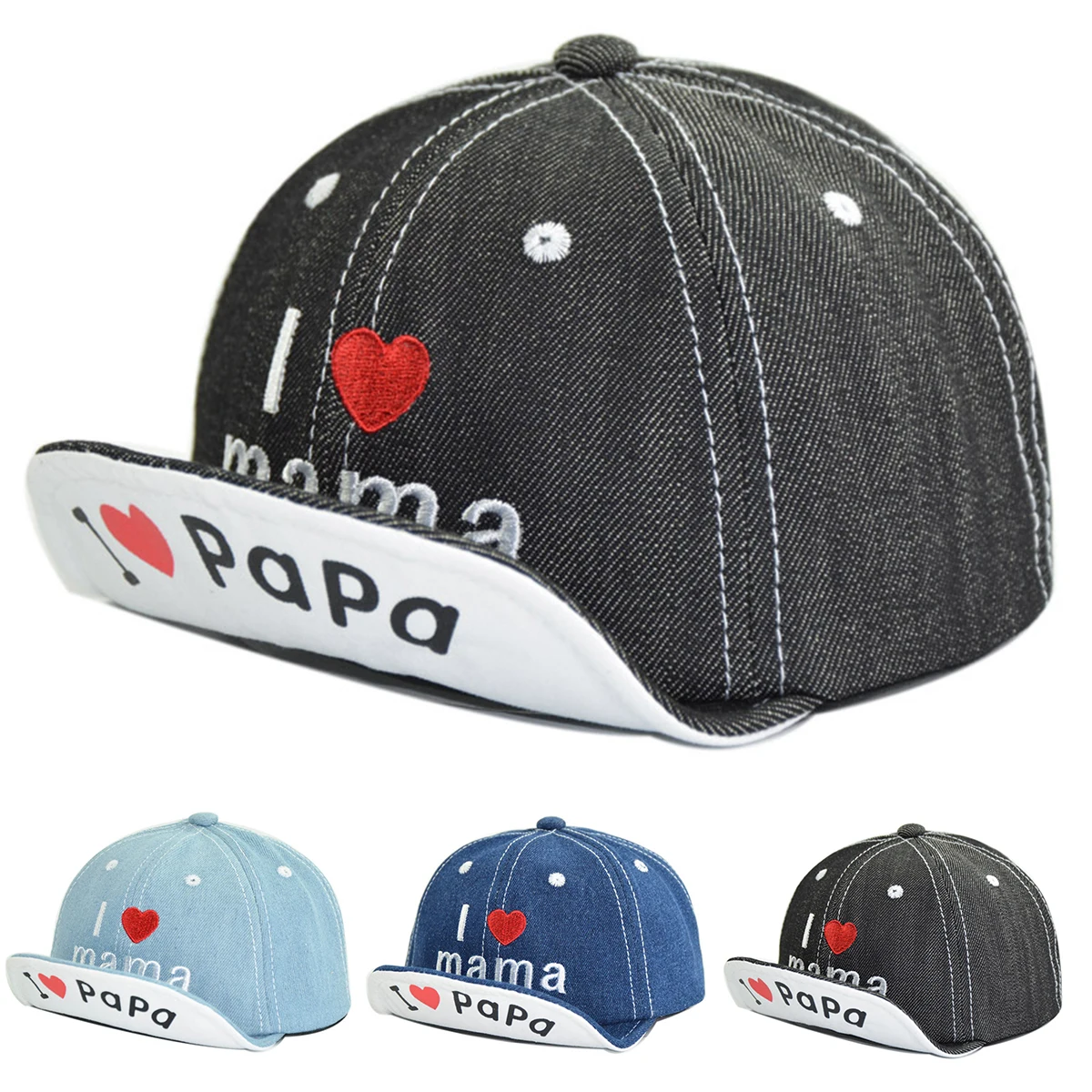 Регулируемый для малышей с надписью «Heart шапка с вышивкой Регулируемый джинсовые Бейсбол Кепки для мальчиков & девочек съемки фото новорожденных