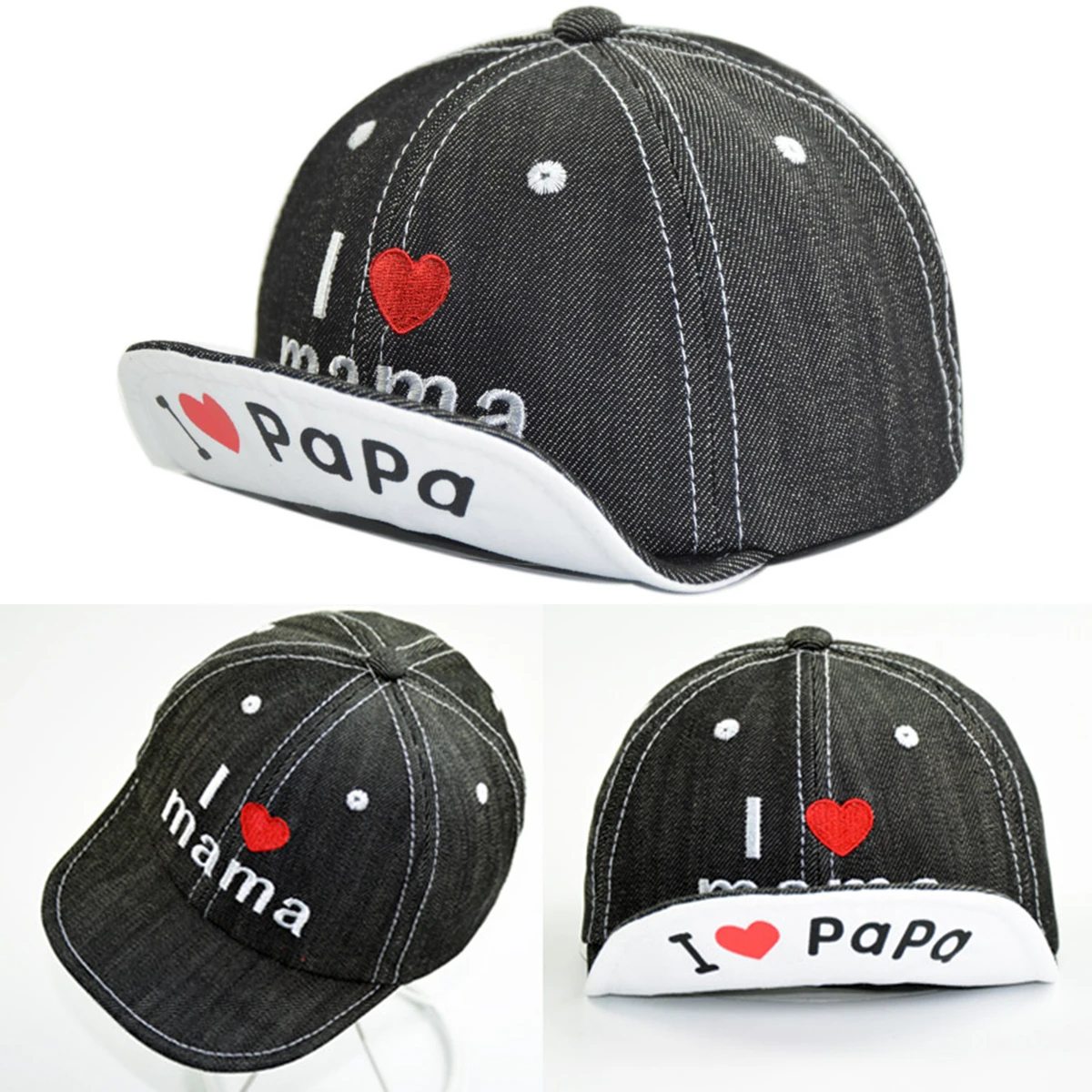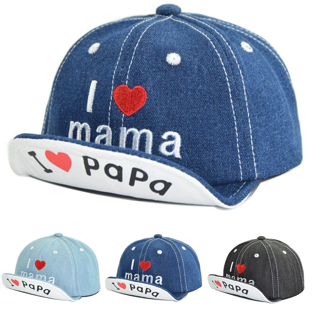 Уникальная вышивка «Мама и папа» на полях и шляпе спередиЗастежка на липучке сзади, свободно Отрегулируйте окружность шапки для идеальной посадки