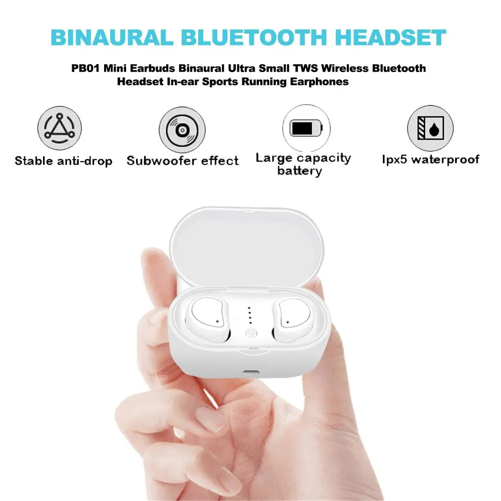 PB01 ультра маленькие наушники бинауральные TWS мини беспроводные Bluetooth наушники-вкладыши для спорта бега с зарядной коробкой для xiomi