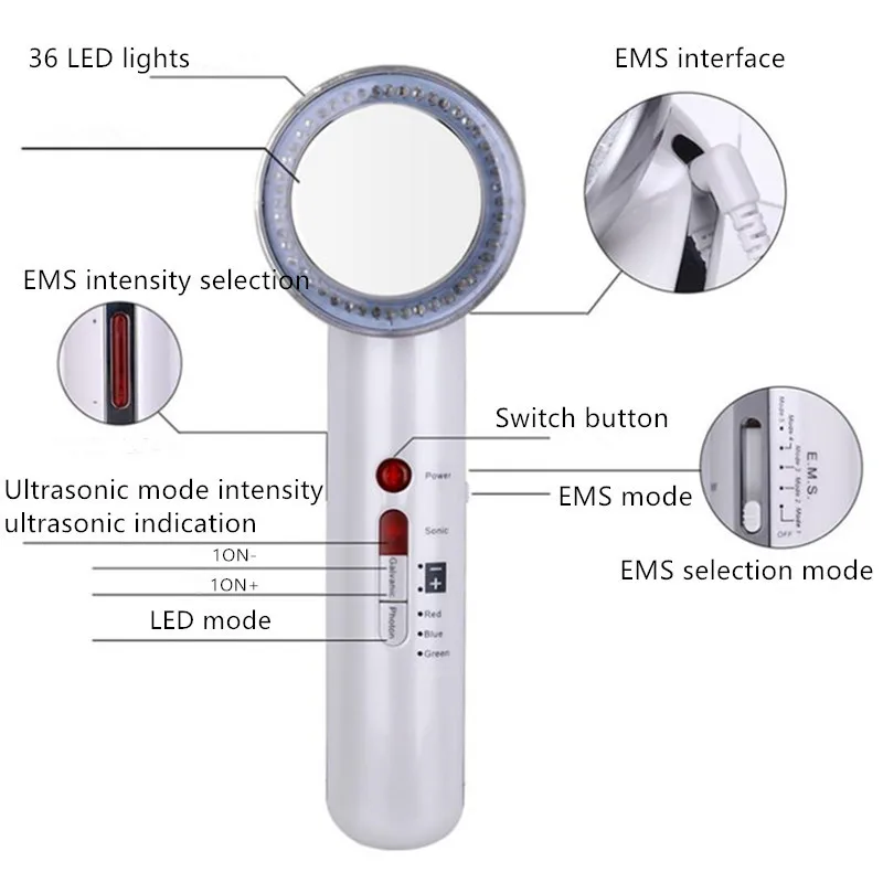 Технические характеристики: Материал: АБС-пластик Вход: 100-240 В Выход: 15V Мощность: 6 Вт Световой поток Частота: 1 МГц Красный светильник Длина волны: 625 ± 3 Нм Синий светильник Длина волны: 465 ± 3 Нм Зеленый светильник Длина волны: 525 ± 3 Нм Размер изделия: прибл. 23,5*5,5*7,5 см/9,3*2,2*3,0 дюймов Вес посылка: прибл. 700 г Тип изделия: машина для похудения тела Функция: ускоряет метаболизм, ускоряет процесс регенерации тканей, разбавляет тусклоту, предотвращает старение, теряет вес, стройнит тело Технология Введение: 1. Ультразвуковой массаж и функция похудения Ультразвук может улучшить проницаемость цитоэмбрана, чтобы изменить анаэробное состояние клеток, повысить способность поглощения клеток, активировать энергию клеток. 2. Светодиодный функция обновления кожи Синий светильник: 455-470нм, синий светильник имеет спокойный и антиакне эффект, он может регулировать состояние секреции кожного сала. Кроме того, синий светильник также улучшает дряблость кожи, обеспечивает подтягивание и подтягивание кожи. Красный светильник: 620-630nm, красный светильник может стимулировать фибровзрыв слоя кориума, ускоряет кровообращение, повышает эластичность кожи, удаляет морщины. Зеленый светильник: 525 ± 3 Нм, имеет эффект нейтрализации, балансировки и успокоения. Это может облегчить напряжение, дренаж лимфы и устранить отек. 3. EMS-прокладки гладкой каналов функция. EMS-это физиотерапия, которая оказывает хороший эффект на тело. EMS может стимулировать акупунктурные точки, активировать энергию, чтобы регулировать внутреннее тело. 4. Волшебные перчатки для массажа и ухода за телом Электродные перчатки могут улучшить циркуляцию тела и способность поглощения клеток. В то же время, он может заботиться о руке. Таким образом, он может одновременно похудеть и заботиться о вашем теле. 5. Положительные ионы, ведущие функцию очистки Большинство остатков грязи, масла и косметики имеют отрицательные ионы, поэтому положительные ионы массажной головки высасывают остатки, чтобы глубоко очистить кожу. 6. Отрицательные ионы, ведущие в питании Питание продуктов ежедневного ухода в основном только попадает в эпидермальный слой, 7 в 1 машина для красоты имеет отрицательные ионы, которые могут сочетаться с положительными ионами клеток кожи, чтобы отправить питание коже, для достижения глубокого питательного эффекта. 7 функций: Затяните ослабленные кожи Улучшить целлюлит Удаление морщин Глубокое питание Разбавленной маланин Устранение акне и пятна Посылка включает в себя: 1 х Главная машина 1 x очки 2 x EMS-прокладки 1 x EMS шнур 2 x EMS перчатки 1 x Мощность адаптер Руководство по эксплуатации на английском языке-1 шт. Примечание: 1. Пожалуйста, прекратите использование, если вы чувствуете какое-либо раздражение. 2. Больным, беременным женщинам и больным сердцем не следует использовать это устройство. 3. Рекомендуется использовать устройство в течение 10 минут для каждой функции в первый раз и постепенно увеличивать время до 30 минут.