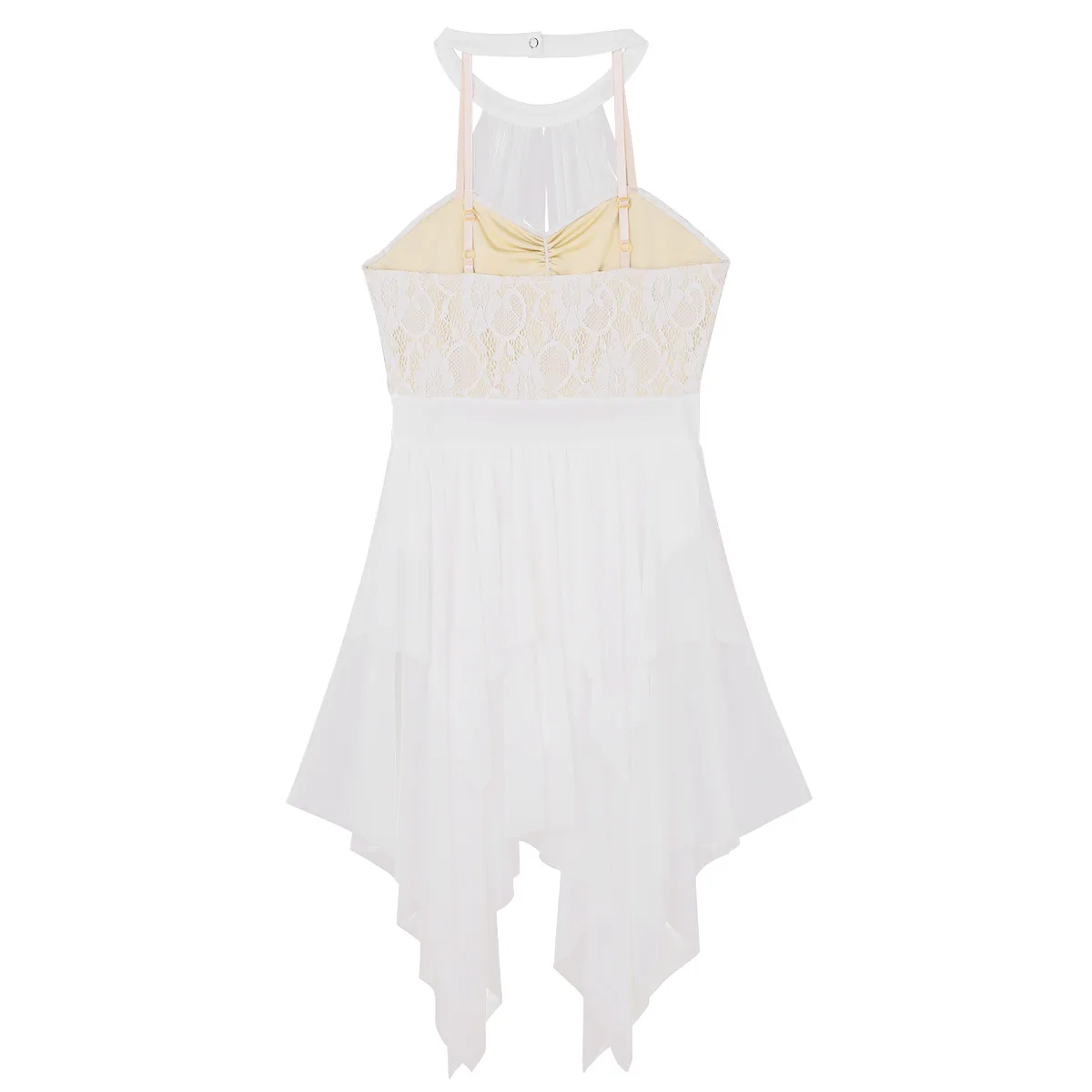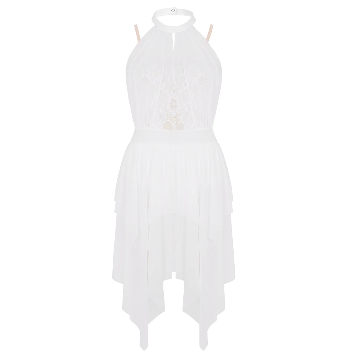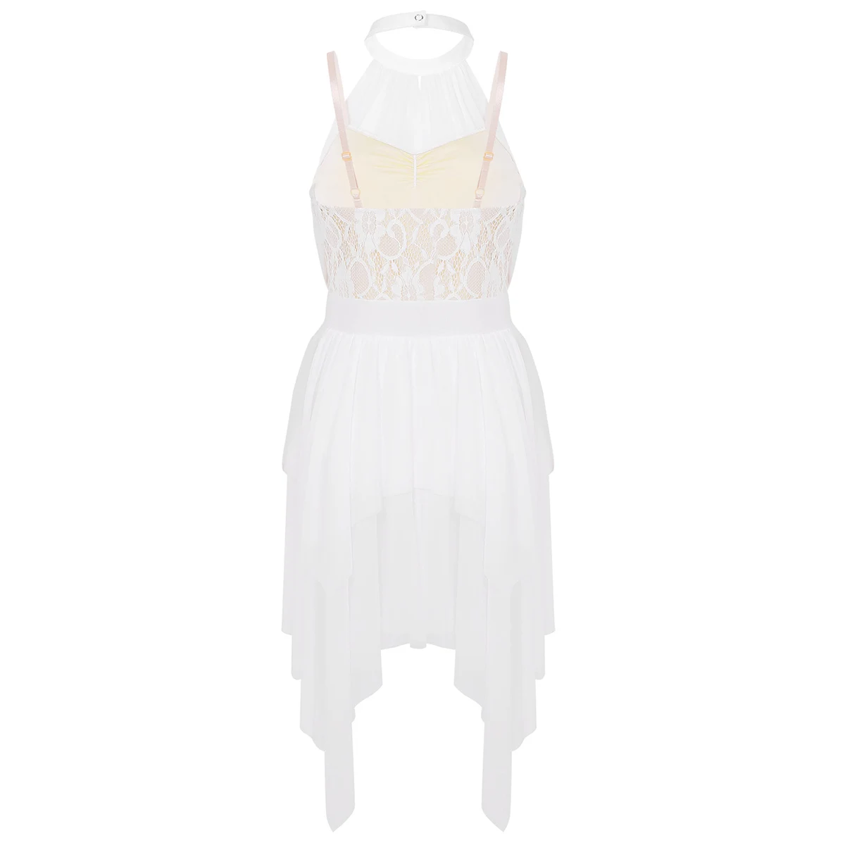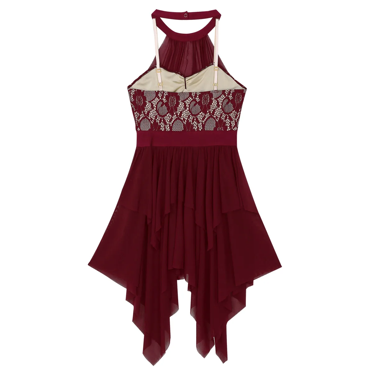 Регулируемые бретельки на бретельках, кружевной лиф с цветочным рисунком и сетчатая подкладка, прикрепленная к воротнику.