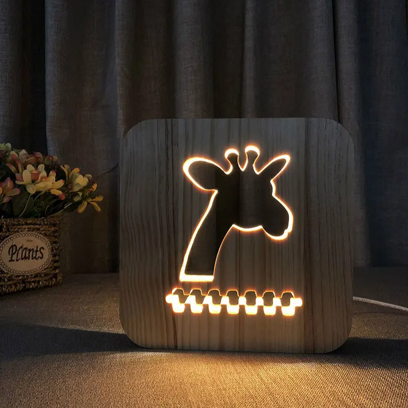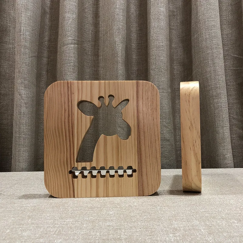 Милый жираф светодиодный ночник из твердой древесины сосны резные полые - купить