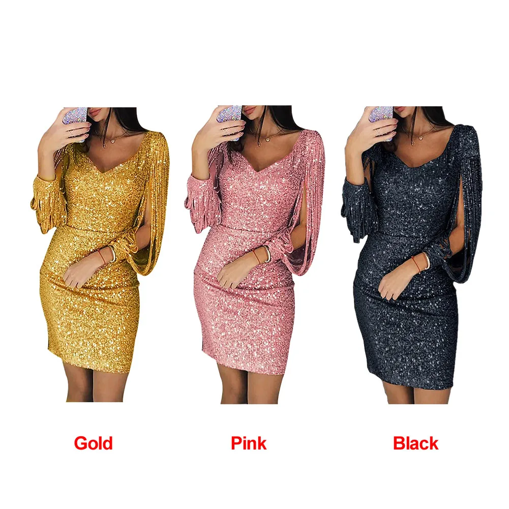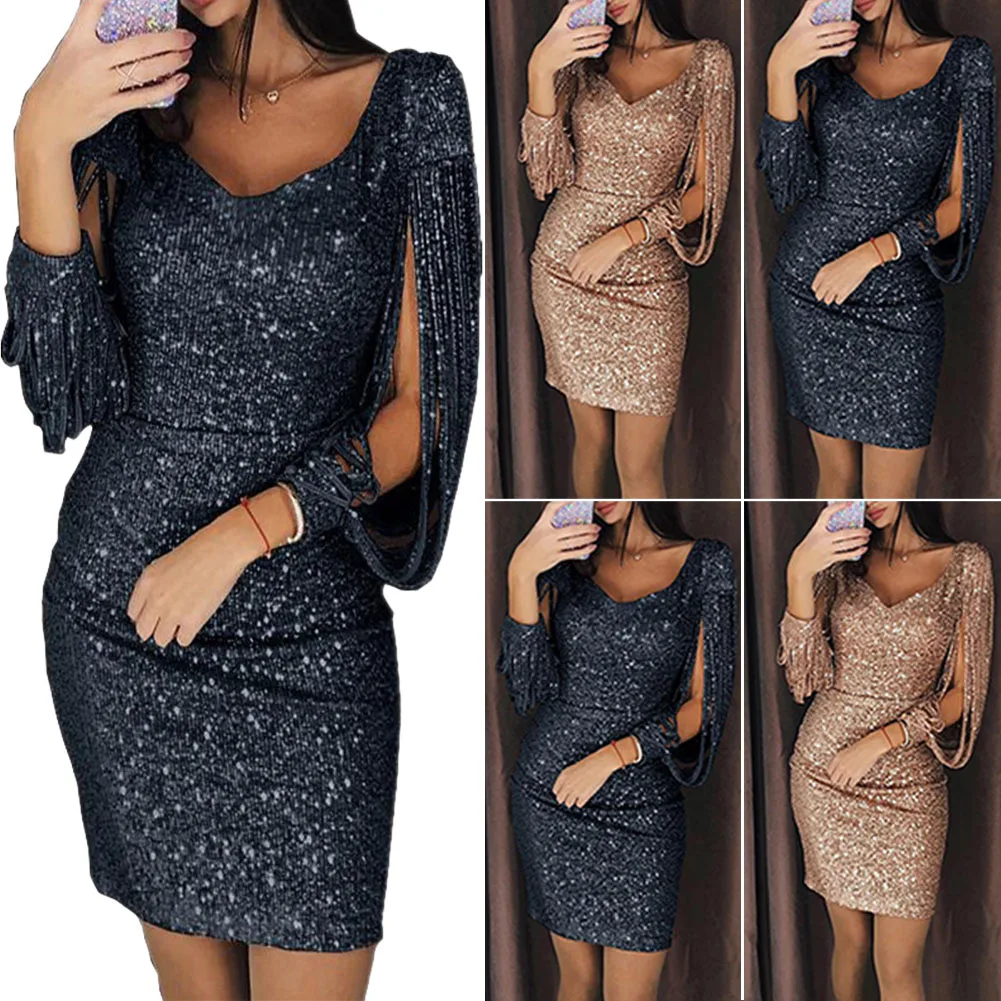 Купить Коктейльное Вечернее платье с высокой талией элегантное блестящее глубоким v