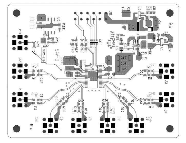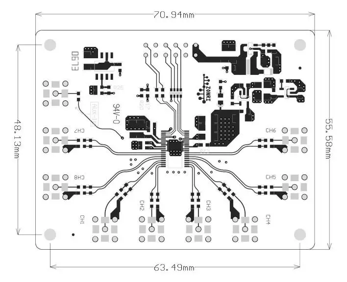 Описание:1. Полный Модуль прикладной схемы ADS8688.2. Порт внешнего источника питания, источника питания Диапазон 2,7-5.5Vdc; 3,3 V источника питания, типичный рабочий ток 33mA; Типичный рабочий ток составляет 5.0mA в тех случаях, когда 5,0 V источника питания.3. Бортовое напряжение ADR444 4,096 V с настраиваемой внутренней/внешней справки.4. Вспомогательный входной канал AUX принимается отдельно и может быть пропущен от внутреннего входного сигнала MUX непосредственно к ADC.5. Поддерживает ± 2,56 V, ± 5,12 V, ± 10,24 V + 5,12 V + 10,24 V входным диапазоном, и входным диапазоном и входной полярности может быть независимо сконфигурирован для всех каналов.6. Максимум 500Ksps выход данных.7. Четырехслойная плата FR4 PCB, в соответствии с директивой ROHS.