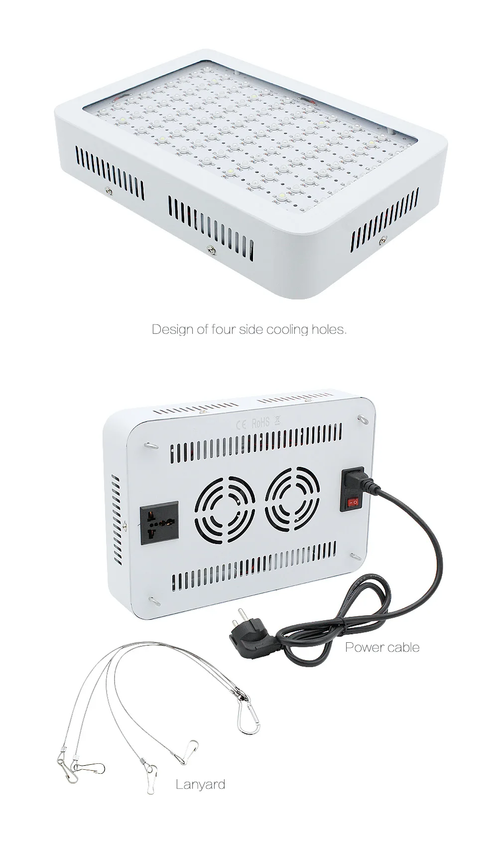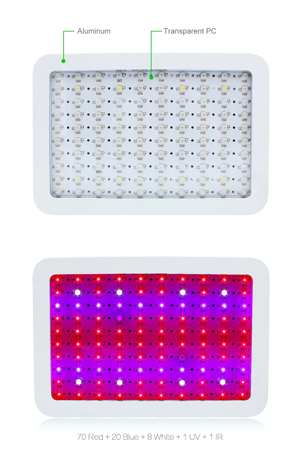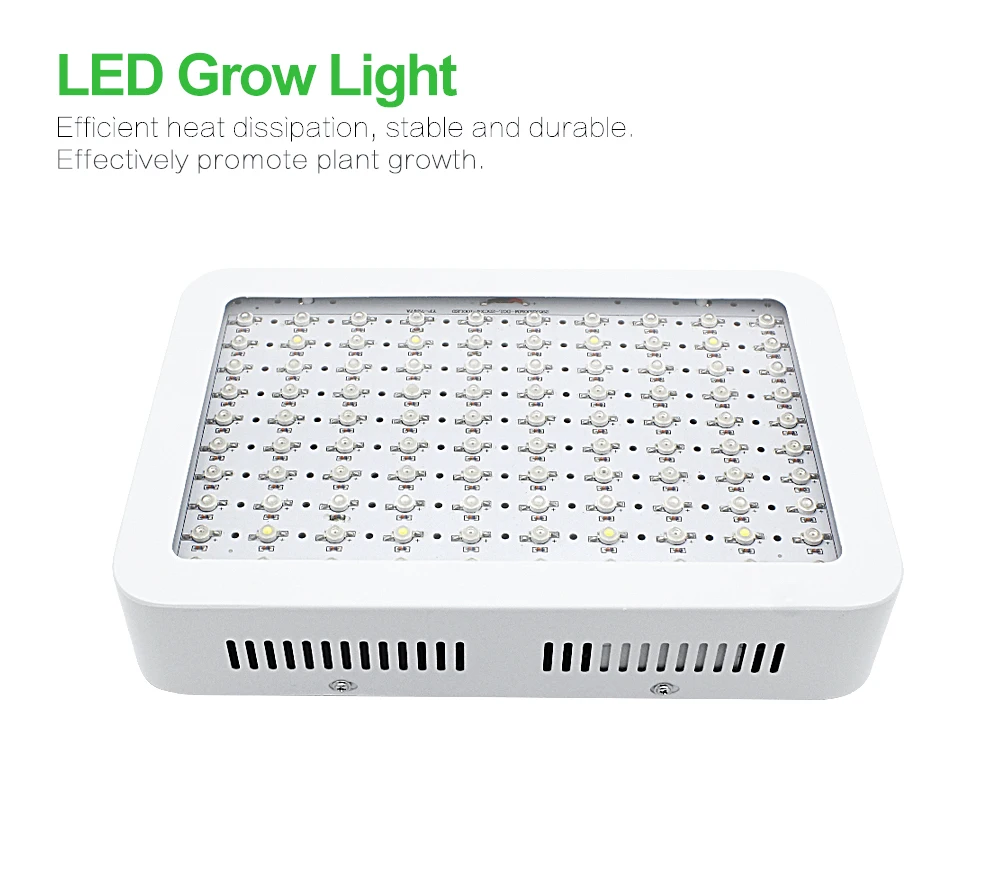 Технические характеристики: Полный спектр для вегетативной и цветущей сцены: 430 ~ 440nm, 450 ~ 475nm, 620 ~ 630nm, 650 ~ 670nm, белый, ИК (730nm) Светодиоды: 100PCS 10W grow LEDs Мощность светодиода: 100x10 Вт = 1000 Вт Фактическое энергопотребление: энергосбережение, просто потребляет около 220 Вт-250 Вт Мощность, гораздо лучше, чем тот же продукт на рынке Размер: 310x210x60mm Площадь покрытия: около 4,2x4,6 квадратных футов (площадь освещения и высота изменяются в зависимости от различных растений и окружающей среды) Срок службы:> 50000 часов Напряжение по всему миру: 85-265 в Рабочая среда: -20 ~ 40 градусов, 45% ~ 95% относительной влажности Рабочая частота: 50 ~ 60 Гц Модульный шнур питания (доступен в США, Великобритании, ЕС, Австралии, JP) Особенности: Глубокое проникновение: хорошее освещение, может проникать в глубину растений Модульная внутренняя сборка: полностью обновляемая, легкая гарантия Термическое управление: изготовленные на заказ медные сердечники радиаторов быстро рассеивают тепло для прохладных рабочих температур Универсальный: шнур питания доступен в 110 В, 220 В и международных вилках Более легкий вес: гораздо легче, чем те же продукты на рынке, безопаснее для подвешивания. Растения: подходит как для вегетативных фраз, так и для цветения фраз В комплект входит: 1х 1000 Вт Светодиодная лампа для выращивания растений 1X Бесплатная Светодиодная лампа для выращивания 1X Бесплатная шнур питания