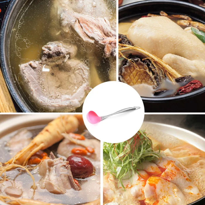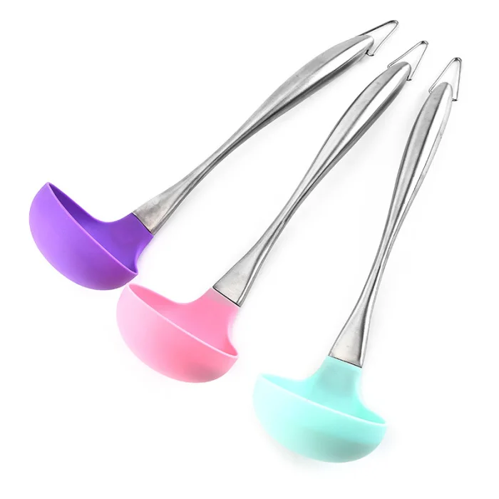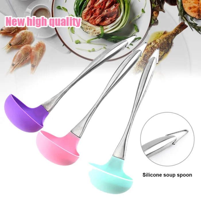 Новая силиконовая ложка для супа из нержавеющей стали, антитемпературные кухонные инструменты для приготовления пищи TE889