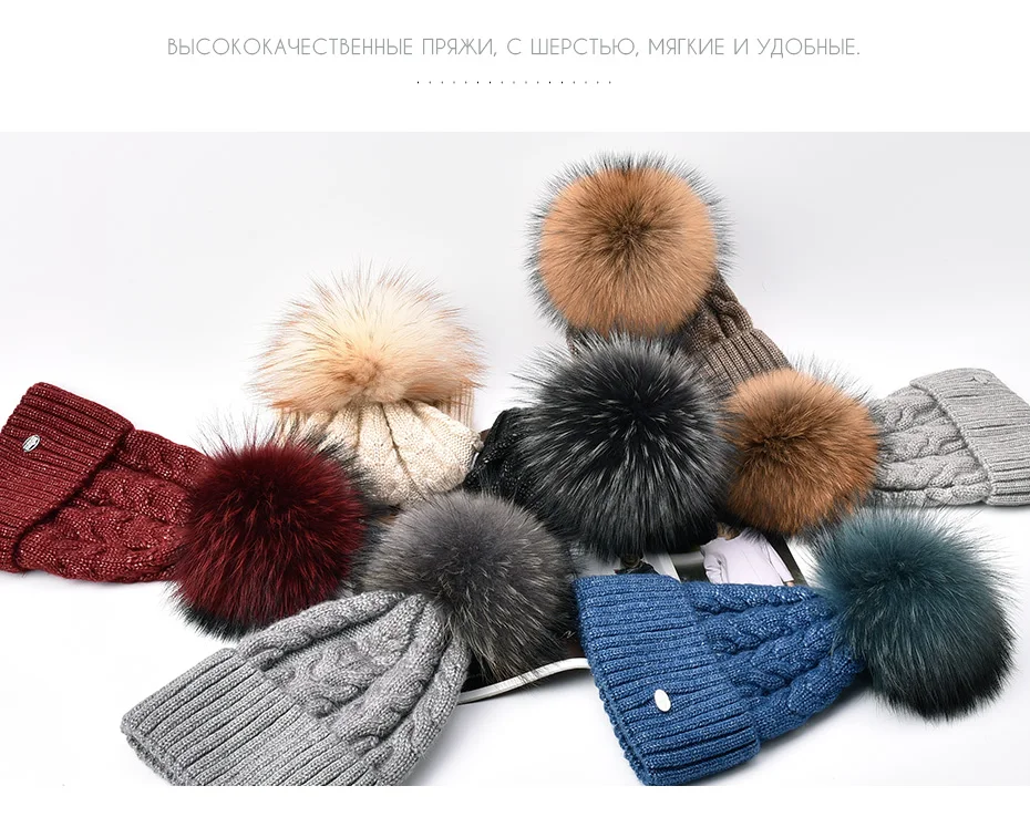 Отзывы о Женская трикотажная шапка ENJOYFUR Толстая теплая с меховым помпоном Аксессуары