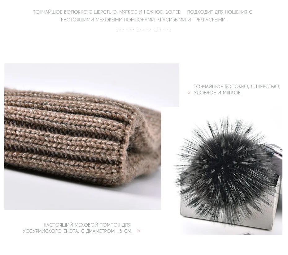 Женская трикотажная шапка ENJOYFUR Толстая теплая с меховым помпоном Аксессуары - купить