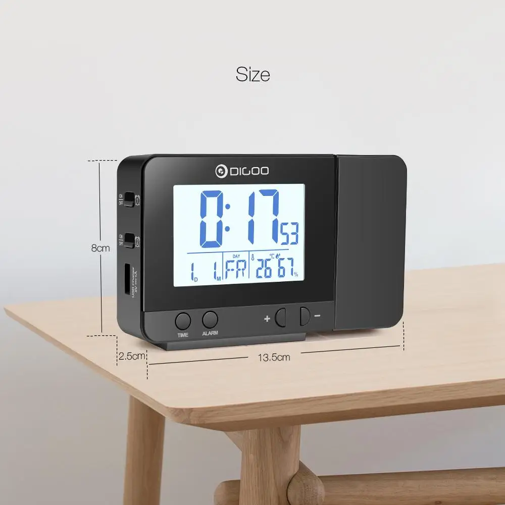 Digoo DG-C10 LCD Wireless USB Rechargeable Backlight Projection Clocks Temperature Humidity Display Desk Clock for Phone Speaker Дом и сад - купить