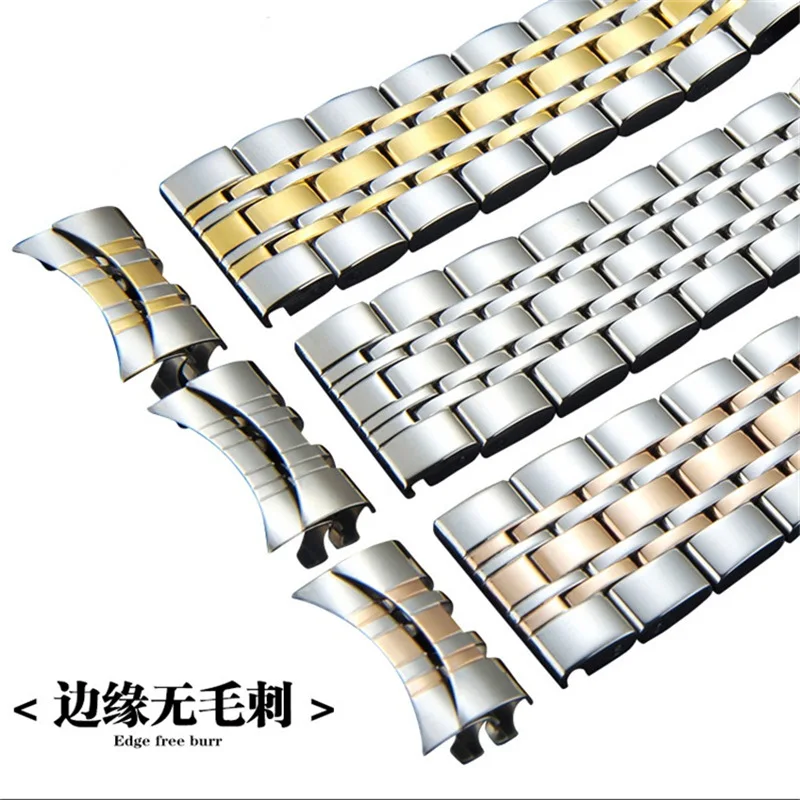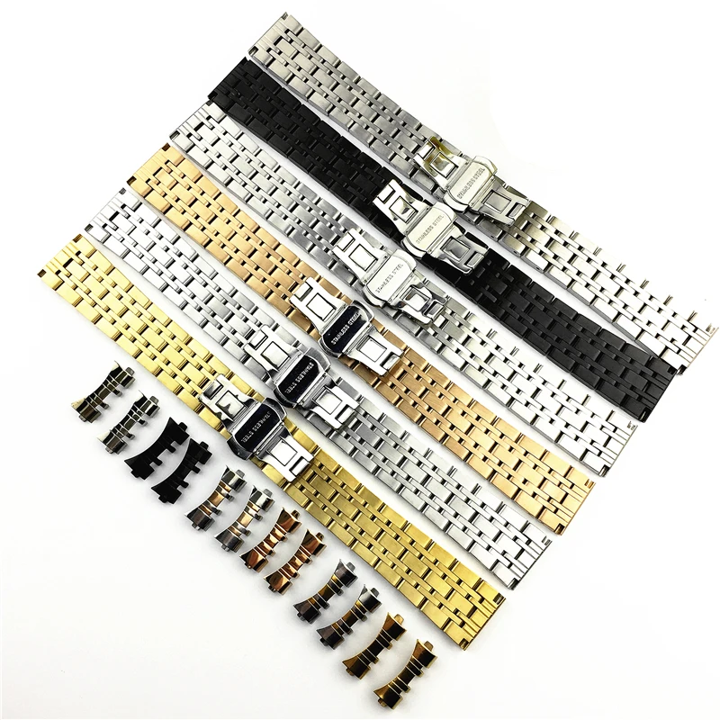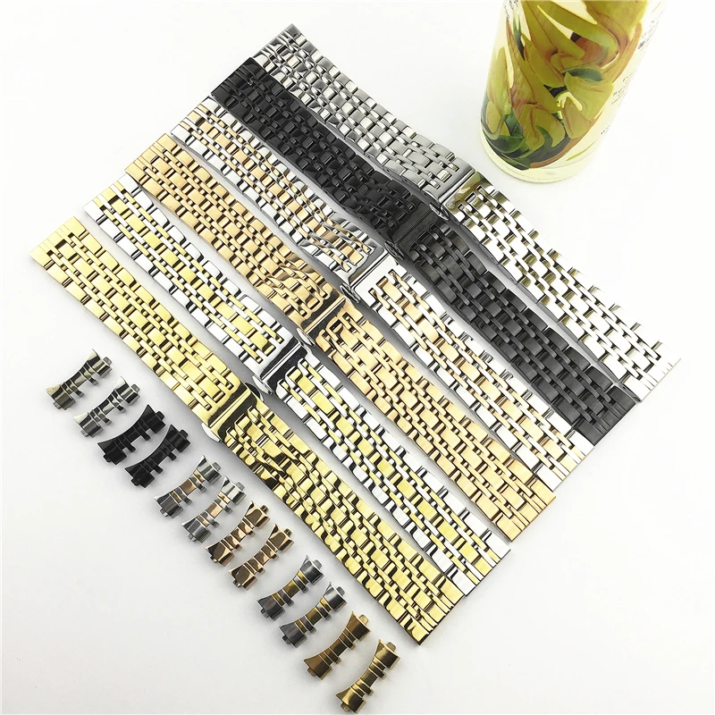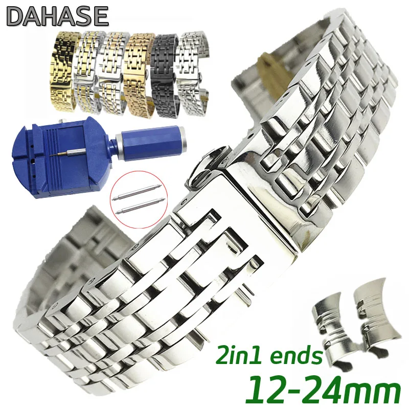 2 в 1 изогнутый прямой ремешок из нержавеющей стали для часов 12 14 15 16 17 18 19 20 21 22 23 24 мм Черный Сменный ремешок для часов