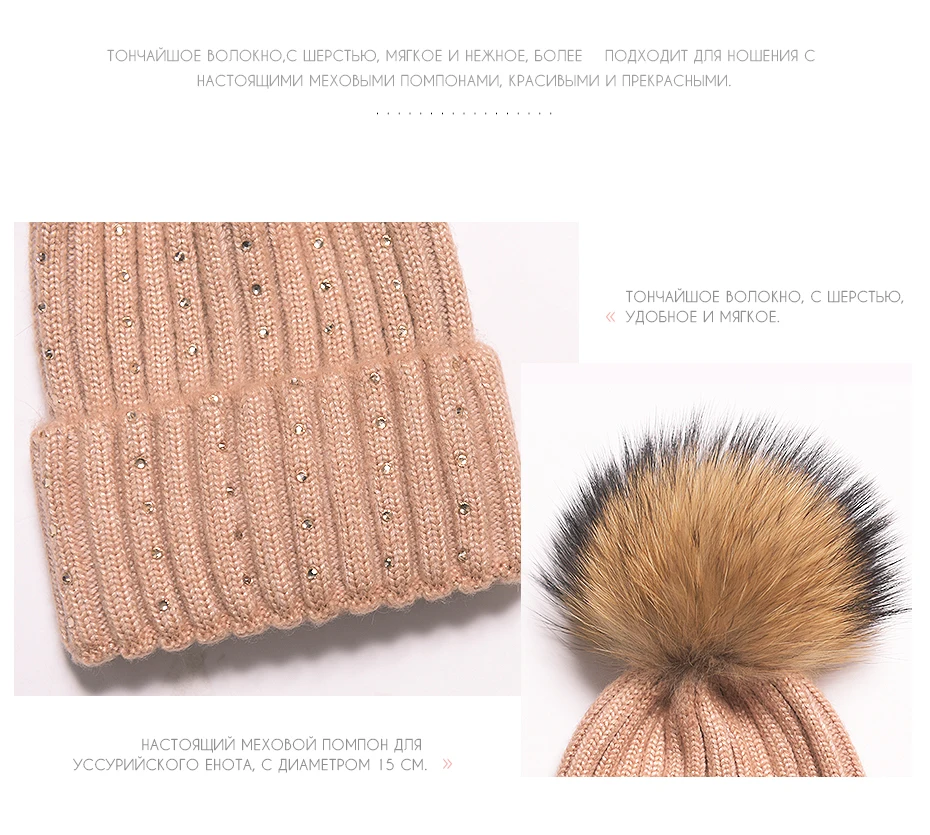 Отзывы о Женская кашемировая шапка ENJOYFUR вязаная с помпоном из меха енота и заостренным