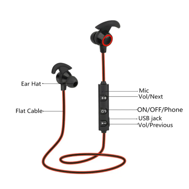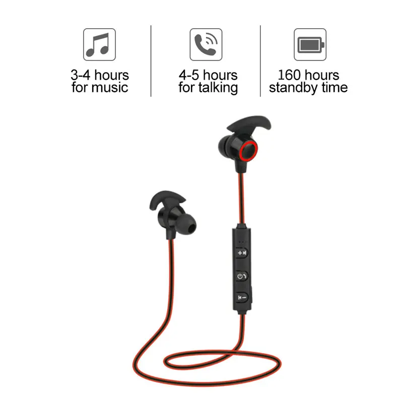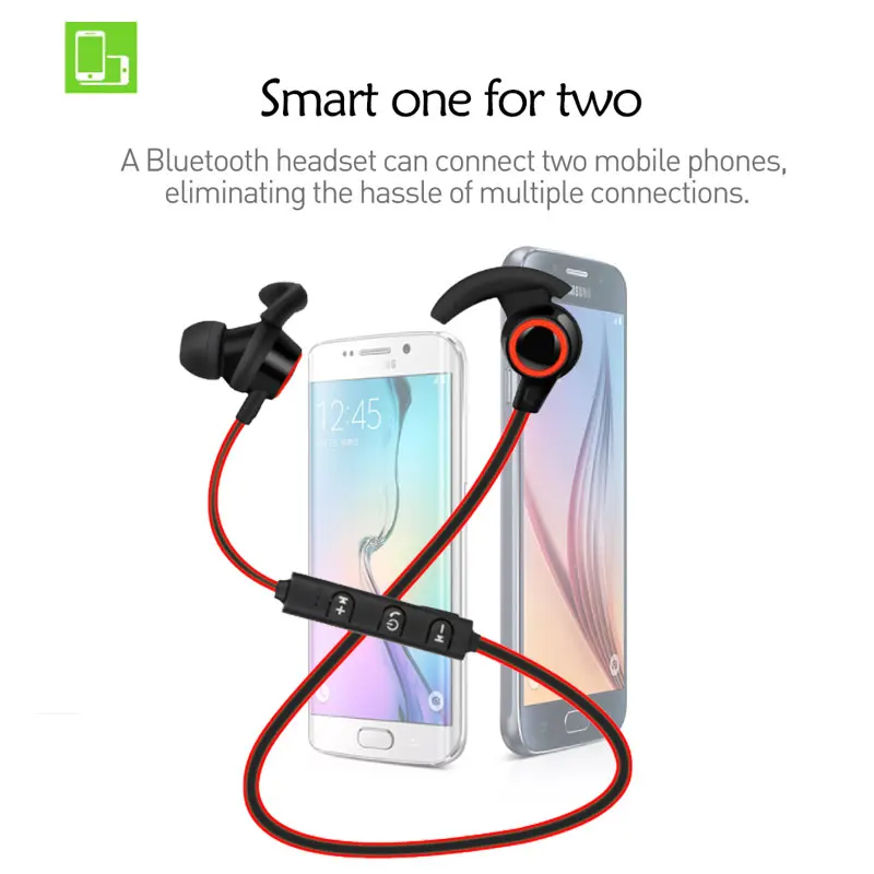 Особенности: -Эксклюзивный дизайн патентов, наушники эргономичный дизайн, удобно носить легко упасть. -Дизайн ушей, снижающий лучшие в мире басы. -Уникальный Магнитный контроль, не легко упасть. -Встроенный микрофон высокой чувствительности, более четкое качество голоса. -Встроенный литиевый аккумулятор, поддерживает 2 часа быстрой зарядки, обеспечивает до пяти часов прослушивания музыки/разговора. -Bluetooth один с двумя для удовлетворения потребностей нескольких источников. -С помощью кнопки воспроизведения вы можете управлять музыкальным проигрывателем и совершать и принимать звонки и другие функции. Технические характеристики: -Цвет: пистолет/черный -Версия Bluetooth: CSR4.1 -Область работы:> 10 метров (отключено) -Время в режиме ожидания:> 180 часов -Срок службы:> 1 ~ 3 часа -Время зарядки: 1 ч -Поддержка соглашения: A2DP, AVRCP, HSP, HFP -Частотная характеристика: 20 Гц-20 кГц Посылка список: (1 шт.);Bluetooth наушники 1 x usb-кабель для зарядки 1 х Руководство пользователя на английском и китайском языках