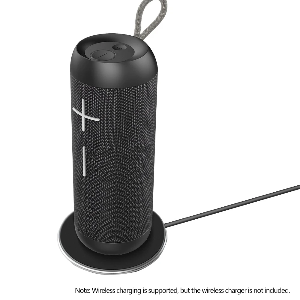 Этот портативный беспроводной динамик поддерживает два режима зарядки, вы можете зарядить его с помощью прилагаемого зарядного кабеля и вы можете зарядить с помощью беспроводного зарядного устройства (Этот продукт не включает Беспроводное зарядное устройство).