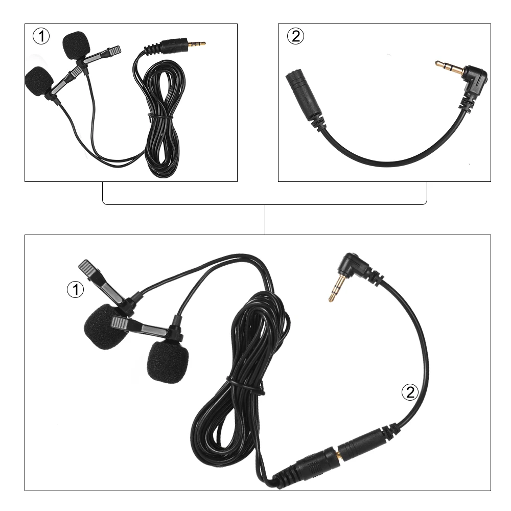 Отзывы о Двуголовый петличный отворот всенаправленный микрофон с зажимом для смартфона